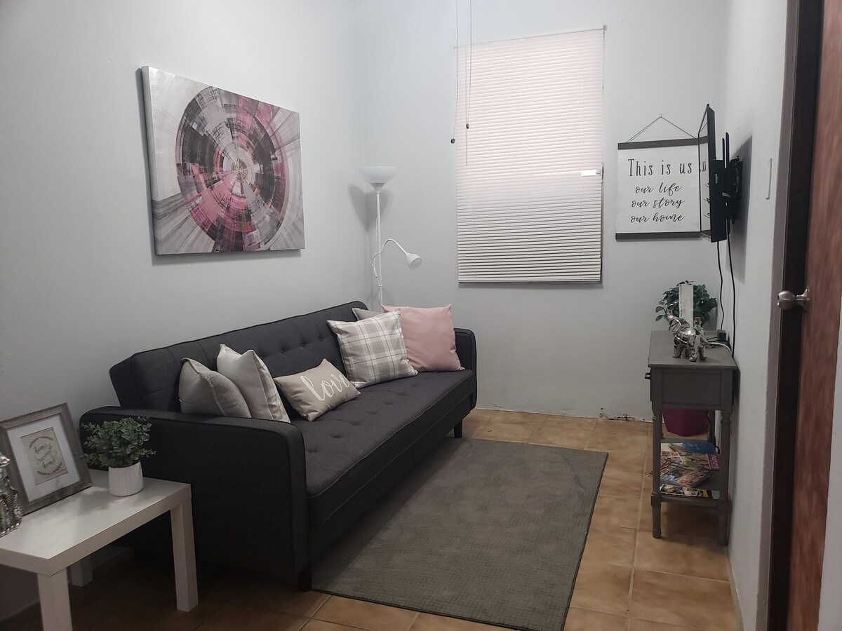 Magandang studio apartment. Super accessible sa mga shopping center, airport, pinakamahahalagang daanan ng lugar ng metropolitan at mga lugar na interesante. May libreng paradahan sa mga pasilidad ng bisita./ Magandang studio. Matatagpuan malapit sa mga shopping center, paliparan, pangunahing daanan sa lugar ng metropolitan at mga lugar na panturista. Mahusay na pinalamutian ng libreng paradahan para sa aming mga bisita.