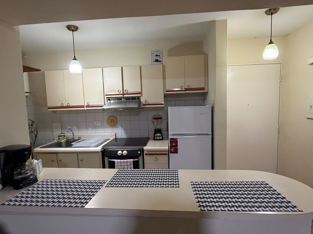 Mag‑enjoy sa komportable, tahimik, at nasa sentrong tuluyan na ito. Apartment na may 1 kuwarto, banyo, washing machine, silid-kainan na may kasangkapan, 1 double bed, 2 komportableng sofa bed, duyan, nasa ika-1 palapag, walang problema ang pag-akyat o pagbaba kung sakaling masira ang mga elevator, internet, tangke ng tubig, TV, safe, access sa internal club na mayroon ang residential complex, mga kamangha-manghang lugar, tingnan ang mga litrato, 150 metro ang layo sa supermarket na Río, mga restawran, malapit sa Paliparan, Parque la Llovizna, Cachamay.