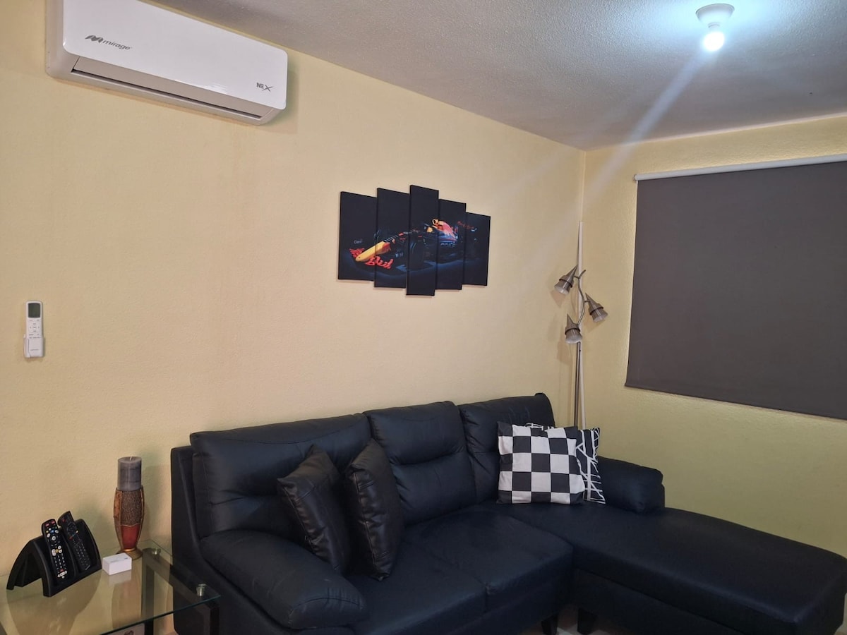 Upper floor apartment sa Duplex na may 2 antas lang. Matatagpuan sa Fraccionamiento Los Encinos, na itinuturing na estratehikong lugar malapit sa paliparan, mga ubasan, mga paaralan, na may mabilis na access sa Highway 57. 40 minuto ang layo ng mga mahiwagang nayon ng Bernal at Tequisquiapan. Tahimik at pamilyar na lugar para magpahinga, nang walang ingay ng lungsod.