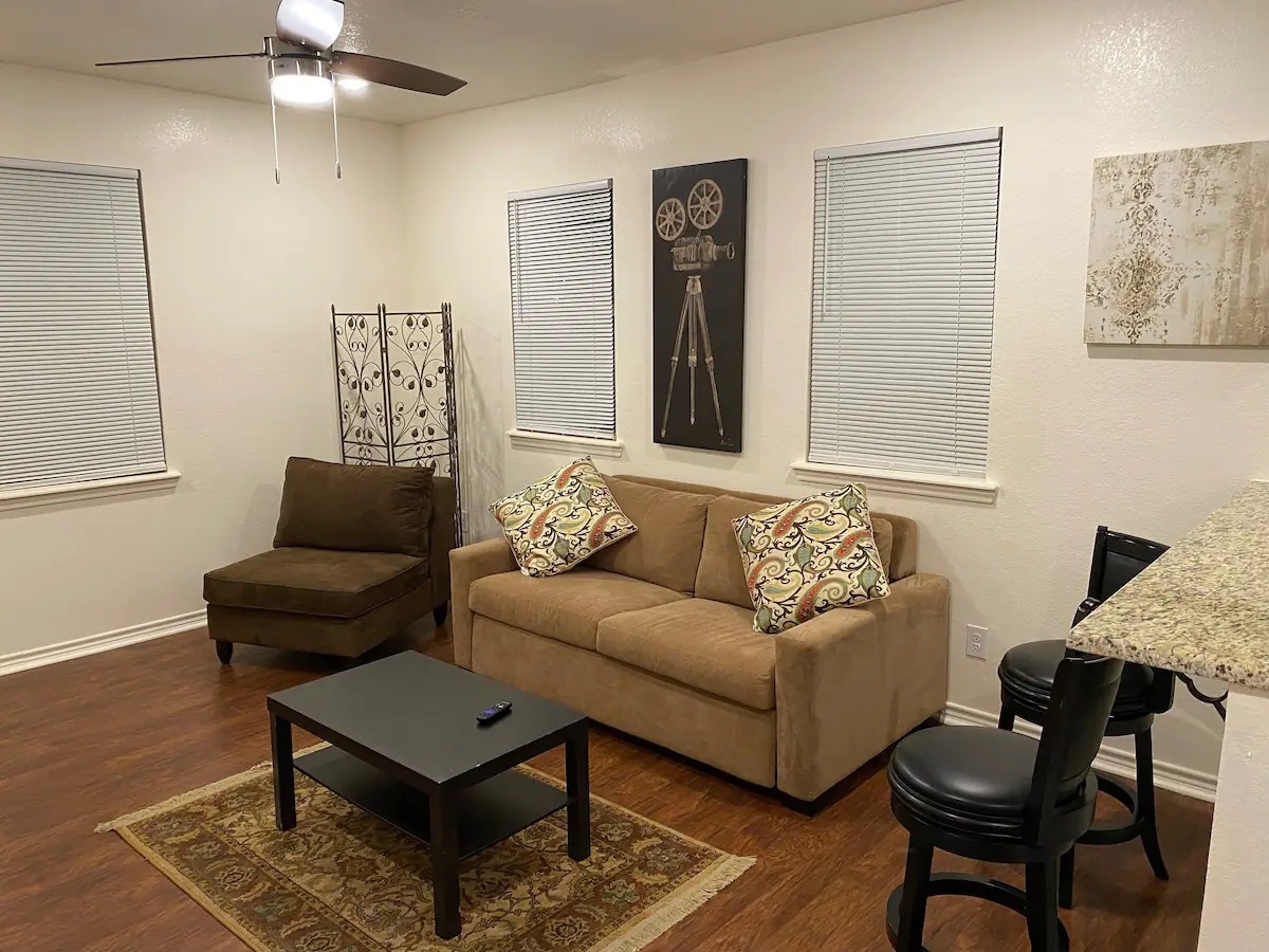 Palibutan ang iyong sarili sa isang hardin at magrelaks sa mapayapang cottage na ito. Mag‑enjoy sa paglangoy sa shared pool o mag‑detox sa sauna. Mag-enjoy sa pamamalaging walang gawain sa bahay! Mag‑e‑enjoy ka sa Hulu na walang ad, napakabilis na internet, maluwag na lugar, may desk, at kumpletong banyo na may washer at dryer. Ilang minuto ang layo mula sa mga atraksyon kaya madali at mabilis na ma - enjoy ang mga tanawin at karanasan ng lungsod. ** Walang paninigarilyo/vaping sa loob ng unit o sa lugar (kasama ang bakuran sa harap). Bawal manigarilyo ** 22 -3