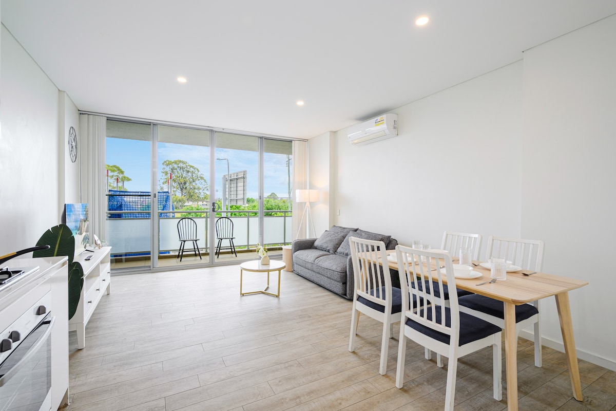 ⭐️ Bright East-facing Scandinavian-inspired apartment with morning Sun, a warm and cozy space during cooler months. Walk to Liverpool Hospital 🏥, trains 🚆 & Westfield 🛍️. Easy access to Olympic Park, Accor Stadium & Sydney CBD, ideal for events, business or family stays. What you’ll love: • 2 comfortable bedrooms & fast Wi-Fi 🛜 • Sun-filled balcony & large living room windows • A/C in living area & master bedroom (heater available for all rooms) • Secured building, lift & FREE parking🅿️