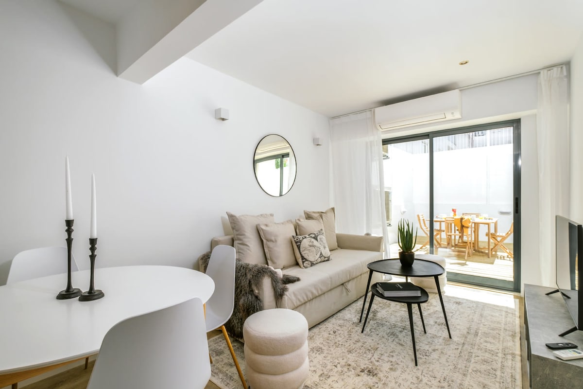 Bagong na - renovate at naka - istilong apartment - Gumising sa tanawin ng maliit na parisukat na may fountain, na katabi ng isang lumang simbahan. Magluto sa kusina na may mga stainless steel na kasangkapan at tapusin ang gabi sa komportableng sofa. Kasama sa iba pang magagandang touch ang mararangyang bedding, malambot na puting tuwalya at mini bar. Naka - istilong, modernong kaginhawaan sa gitna ng Cascais.
