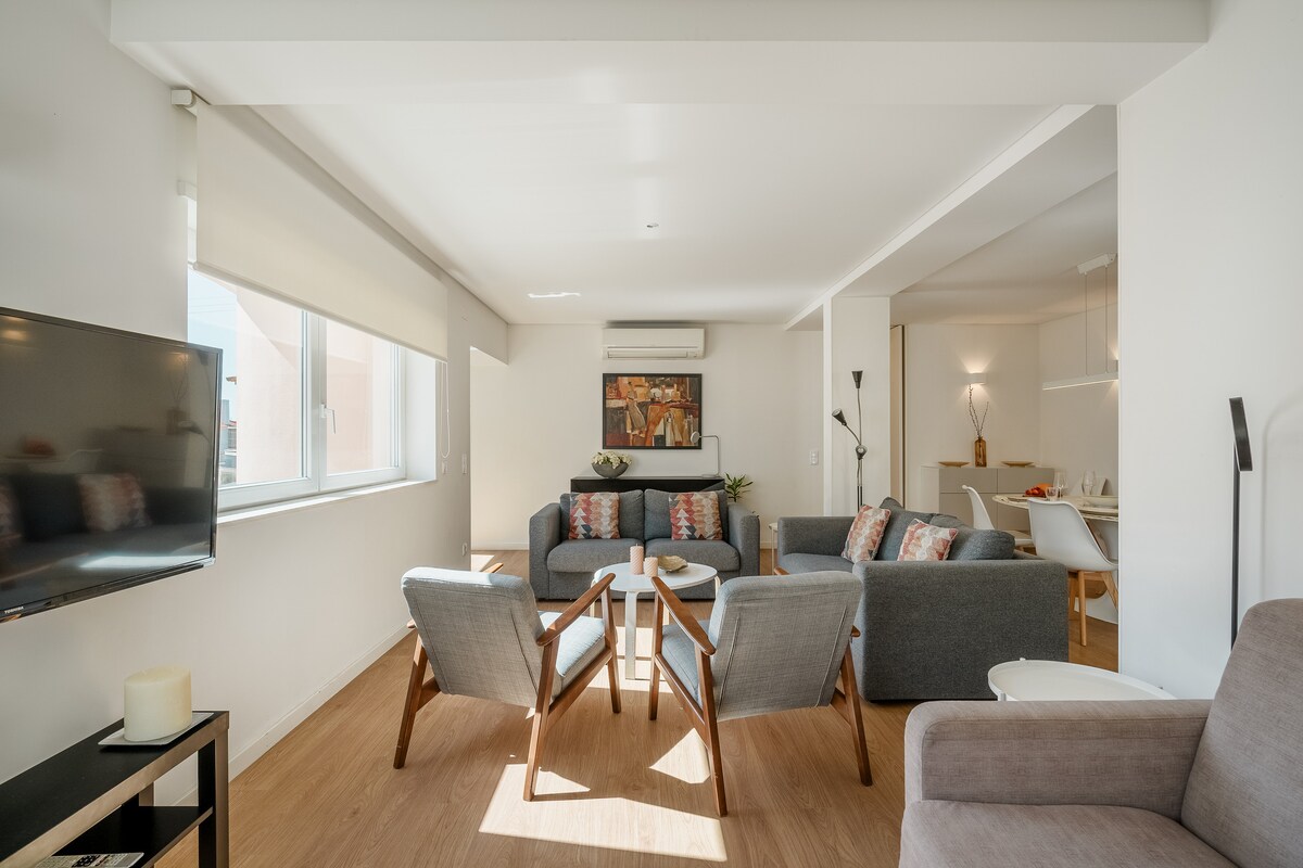 Tuklasin ang pinakamaganda sa Cascais at ang mga nakapaligid na lugar sa marangyang townhouse na ito na may mga nakamamanghang malalawak na tanawin mula sa terrace. Maluwag, elegante, at kumpleto ang kagamitan, mainam ito para sa mga pamilya at malalaking grupo na naghahanap ng kaginhawaan, privacy, at sopistikadong ugnayan. May pribadong rooftop pool na may heating, libreng paradahan na may electric charging, at mga pang‑tour na bisikleta. Ilan lang ito sa maraming dahilan kung bakit magugustuhan mong tuklasin ang kahanga‑hangang hiyas na ito sa Cascais, ang Light Haus CONDO.