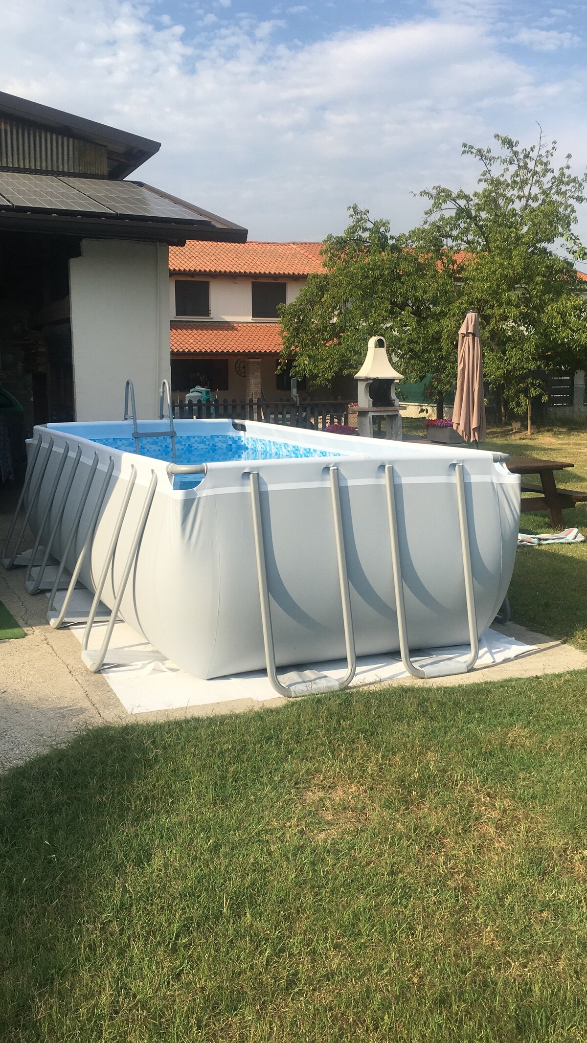 Apartment na may tatlong kuwarto at malaking hardin sa kanayunan. Isang double room na may pribadong banyo at isa pang double at single room na may shared bathroom. Tahimik, pribado, perpekto para sa mga pamilya o grupo at pwedeng magdala ng alagang hayop. Matatagpuan sa unang palapag, may sariling pasukan, pribadong paradahan sa lugar, at wifi. Nakatira sa lugar ang mga host. Nasa gitna ito ng mga makasaysayang lungsod ng Venice, Padova, at Treviso. Madaling maabot mula sa highway. 1.5 oras mula sa magagandang bundok ng Dolomite at 1 oras mula sa beach.