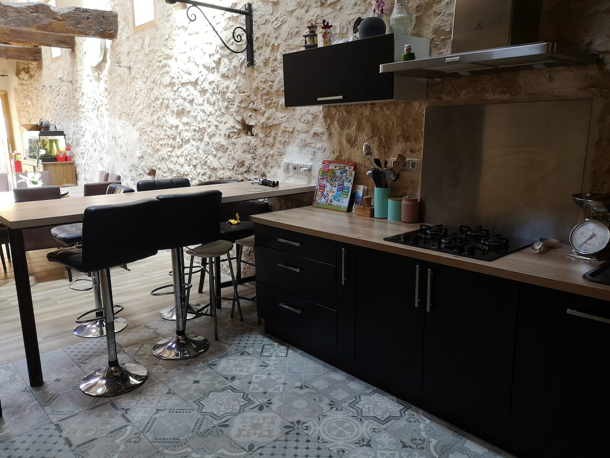 Sa isang nayon na nasa mabatong talampas, tinatanggap ka ng isang ganap na naibalik na guest house sa isang kamalig para sa mga sandali ng pagrerelaks. Makikinabang ka sa kusinang kumpleto sa kagamitan na may dishwasher. Shower room na may washing machine. Isang independiyenteng master bedroom pati na rin ang mezzanine na may 2 higaan sa 90 cm at isang bz bench. Panlabas na lugar na pang‑relaks na may dining area. May dagdag na bayad ang pag‑charge ng de‑kuryenteng sasakyan.