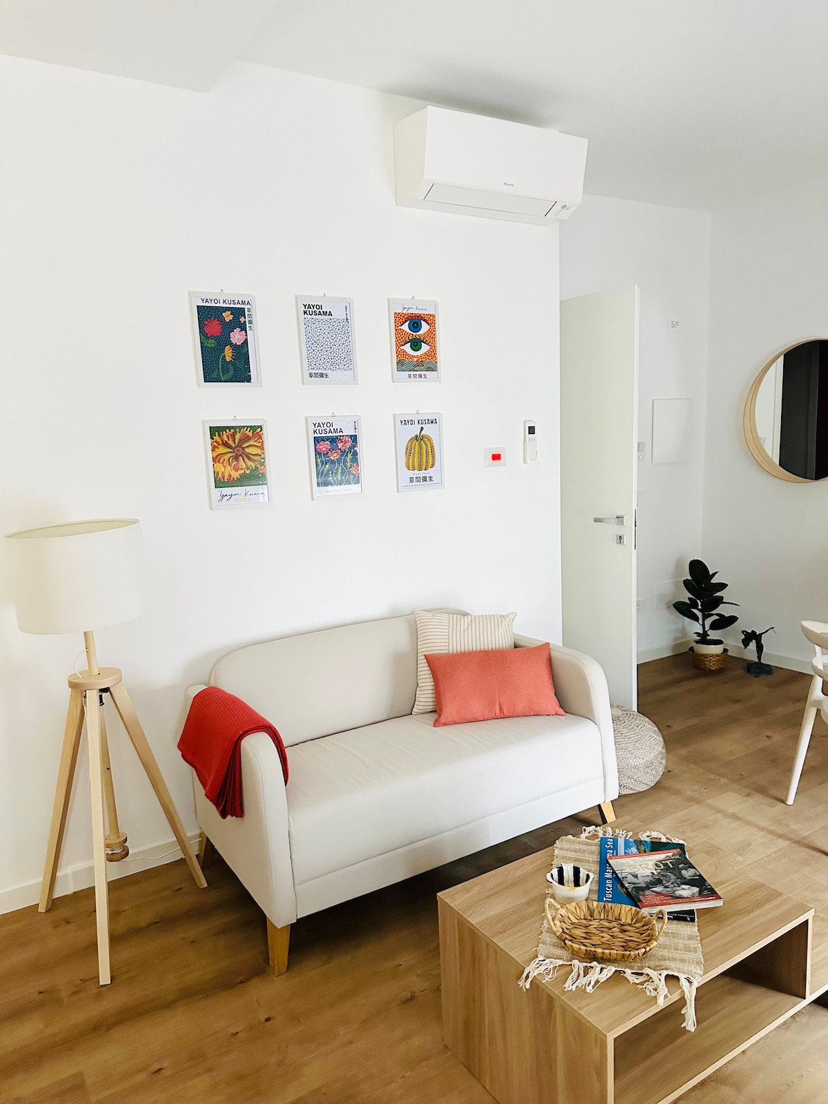 Maliwanag at bago, nasa tahimik na lokasyon ang apartment na ito na malapit sa dagat at sentro ng bayan, kaya makakalimutan mo ang iyong kotse - ilang hakbang lang ang layo ng lahat. Ang apartment na ito na may kumpletong 2 silid - tulugan ay may lahat ng ito: isang modernong kusina, mga lambat ng lamok, komportableng air conditioning, at kahit na isang cot at high chair para sa iyong maliit na bata. Naisip namin ang bawat detalye, kabilang ang mga laruan sa beach para sa dagdag na kasiyahan. Narito na ang lahat ng kailangan mo para sa walang aberyang pamamalagi; dalhin lang ang iyong mga personal na gamit.