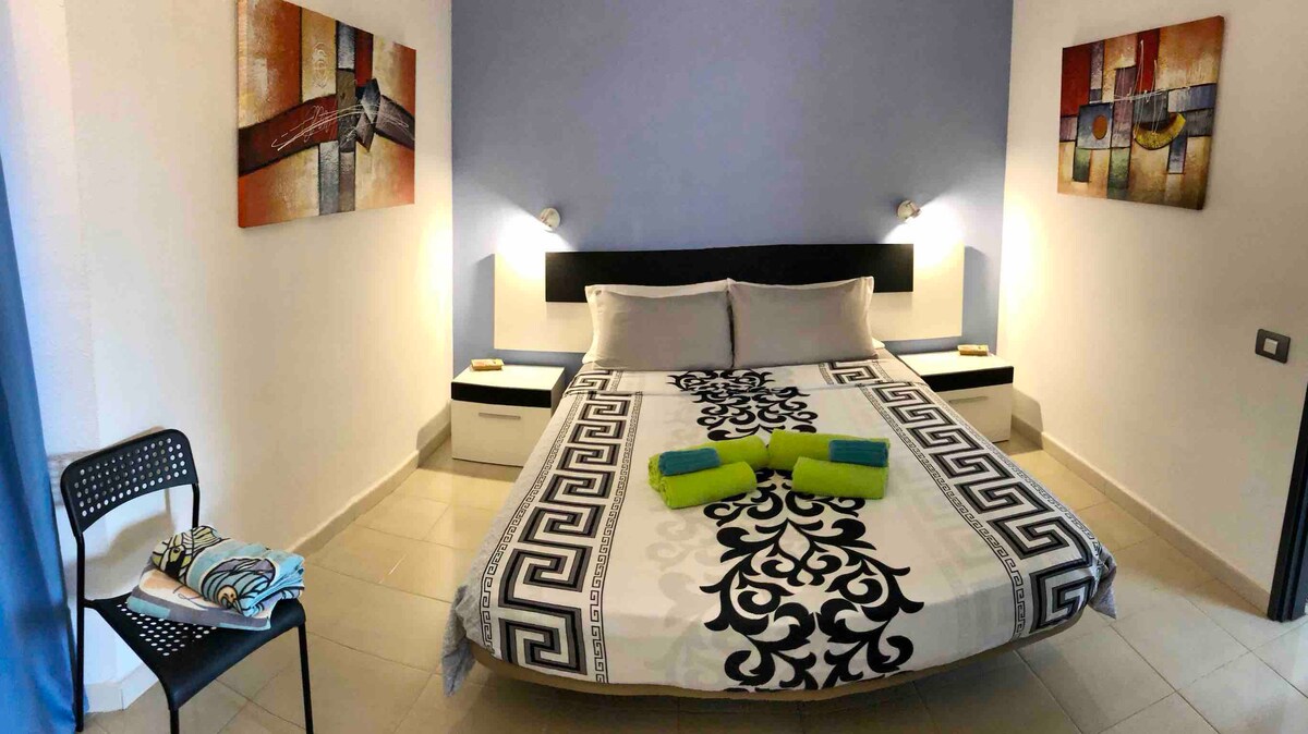 Magbakasyon nang may estilo sa tuluyang ito na ilang metro lang ang layo sa sentro. Matatagpuan ang Sahara Beach 100 metro mula sa sentro ng Caleta de Fuste, ilang metro lang mula sa mga bar, restawran, at pamilihan. Ganap na na - renovate gamit ang mga de - kalidad na pagtatapos. May dalawang kuwarto, banyo, sala, kumpletong kusina, outdoor terrace, libreng Wi‑Fi, dishwasher, community pool at bar sa loob ng complex, at pribadong paradahan. May hiwalay na pasukan.
