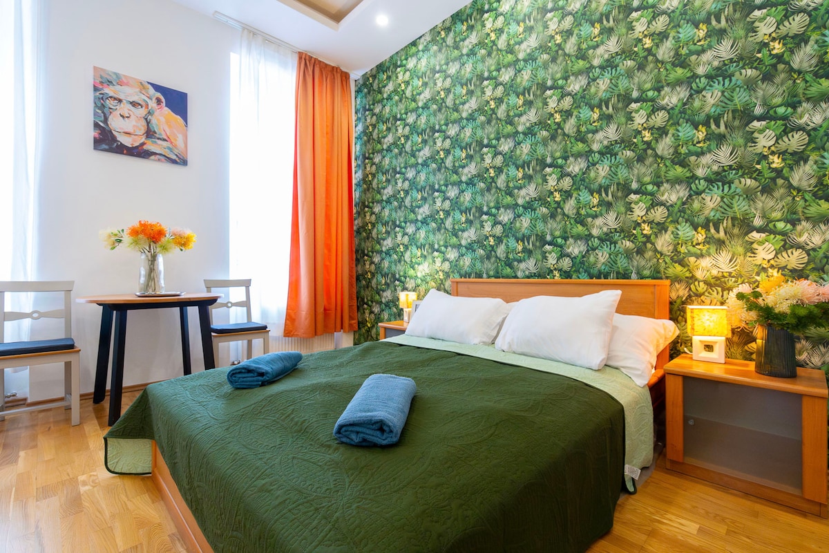 Paano ang tungkol sa isang tasa ng kape sa isang komportableng balkonahe na may isang malawak na tanawin ng Buda Castle? Nag - aalok ang napakagandang apartment na ito ng karanasang ito! Ang apartment ay moderno, kumpleto ang kagamitan, natatangi ang layout nito. Matatanaw sa tulugan ang tahimik na patyo na natatakpan ng mga berdeng halaman. Matatagpuan ang apartment sa gitna ngunit tahimik na bahagi ng Buda, malapit sa Chain Bridge na nagkokonekta sa Pest&Buda. Maganda ang lokasyon: mga restawran, lugar para sa almusal, parke, panaderya, tindahan, pampublikong transportasyon, matutuluyang bisikleta sa komunidad, ATM sa malapit.