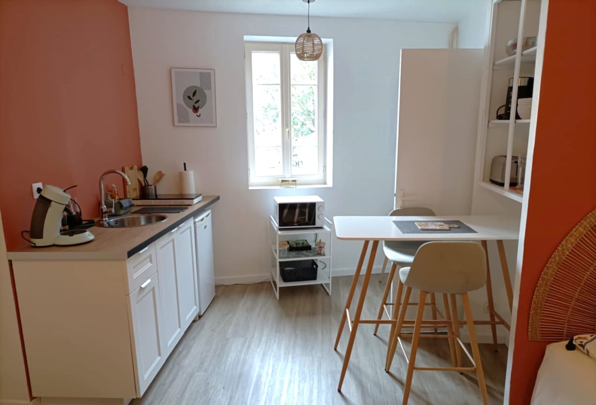 Halika at magrelaks sa medyo tahimik na T2 na ito, na matatagpuan 7 minuto lang mula sa sentro ng lungsod ng Castres. Ang mga pakinabang ng lokasyon ng listing mo: - Daanan ng bisikleta sa labas ng listing - Munisipal na swimming pool, parke, golf - Komersyal na lugar 900m ang layo (sobrang U, parmasya, tabako/nagmamadali, .... - supérette 200m ang layo, 3 minutong lakad - Mazamet gate 25min ang layo - Maraming lawa at hike sa malapit Ang + Posibilidad na magrenta sa iyo ng mga kayak kusina sa labas na may plancha Bagong tuluyan
