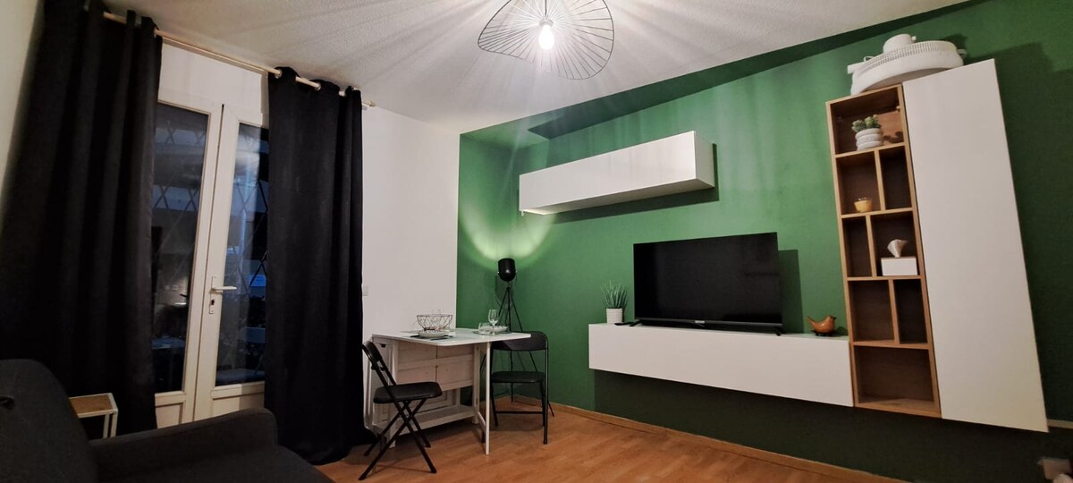 Nag - aalok ako sa iyo ng maginhawang apartment na 35 m2 na bagong ayos at kumpleto sa kagamitan, napakatahimik. Aakitin ka nito sa pagiging praktikal at lokasyon nito. Maa - access nang mag - isa ang sariling serbisyo sa pag - check in/pag - check out sa tuluyan. Matatagpuan may 2 minutong lakad mula sa sentro ng lungsod at sa lahat ng amenidad, pati na rin 10 minuto mula sa istasyon ng tren ng SNCF. May ilang libreng paradahan malapit sa listing