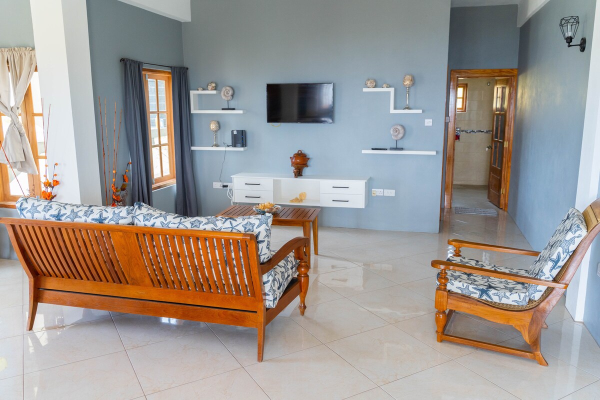 Magrelaks sa natatangi at tahimik na bakasyunang ito. Matatagpuan ang property sa Peninsular sa itaas ng un - spoilt Beach na may kamangha - manghang tanawin ng bahagi ng North at South West ng Island, na may nakamamanghang tanawin ng Dagat Caribbean. Matatamasa ng mga bisita ang pinakamainam sa parehong mundo; Tangkilikin ang katahimikan ng paraiso na ito, ang mga kanta ng mga ibon tuwing umaga at ang paglabag ng mga alon sa gabi, malayo sa kaguluhan ng trapiko ng sasakyan. Tumatagal lang ng 5 minutong biyahe papunta sa pangunahing kalsada.