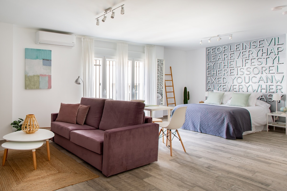 Spectacular and cozy apartment in the Plaza de la Magdalena, the heart of Seville. Its spectacular terrace is a privilege, as you will be able to enjoy the sun of Seville at any time of the year. Its location is simply unbeatable: 10 minutes from the Giralda, the Cathedral or the famous Setas de Sevilla and a few meters from the river and the Puente de Triana. In addition, in the surroundings you can enjoy countless bars and local restaurants to get to know the local cuisine in the best way.