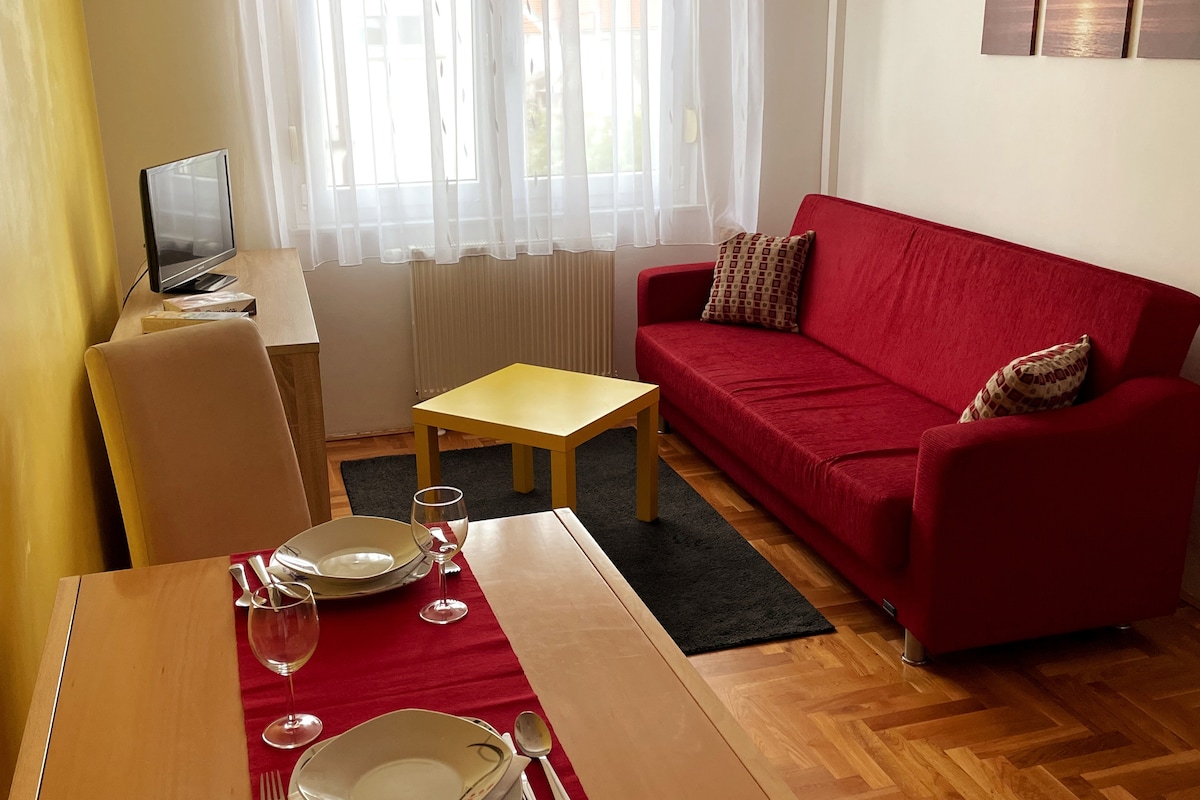 Kaaya - ayang apartment na may dalawang silid - tulugan, na nilagyan para sa pamamalagi ng bisita. Matatagpuan ito sa tahimik na kalye ng nayon ng Rudeš, sa ika -2 palapag ng residensyal na gusali (nang walang elevator). Malapit ang Lake Jarun, na may iba 't ibang alok sa catering para sa mga gustong mamalagi sa labas, at puwede kang mag - enjoy sa iba' t ibang aktibidad na libangan. Sa loob ng 300 metro, may mga tindahan, parke, palaruan, restawran, parmasya ng bus at tram istasyon. Mula sa sentro ng Zagreb, mayroon kang 15 minutong biyahe o pampublikong transportasyon.