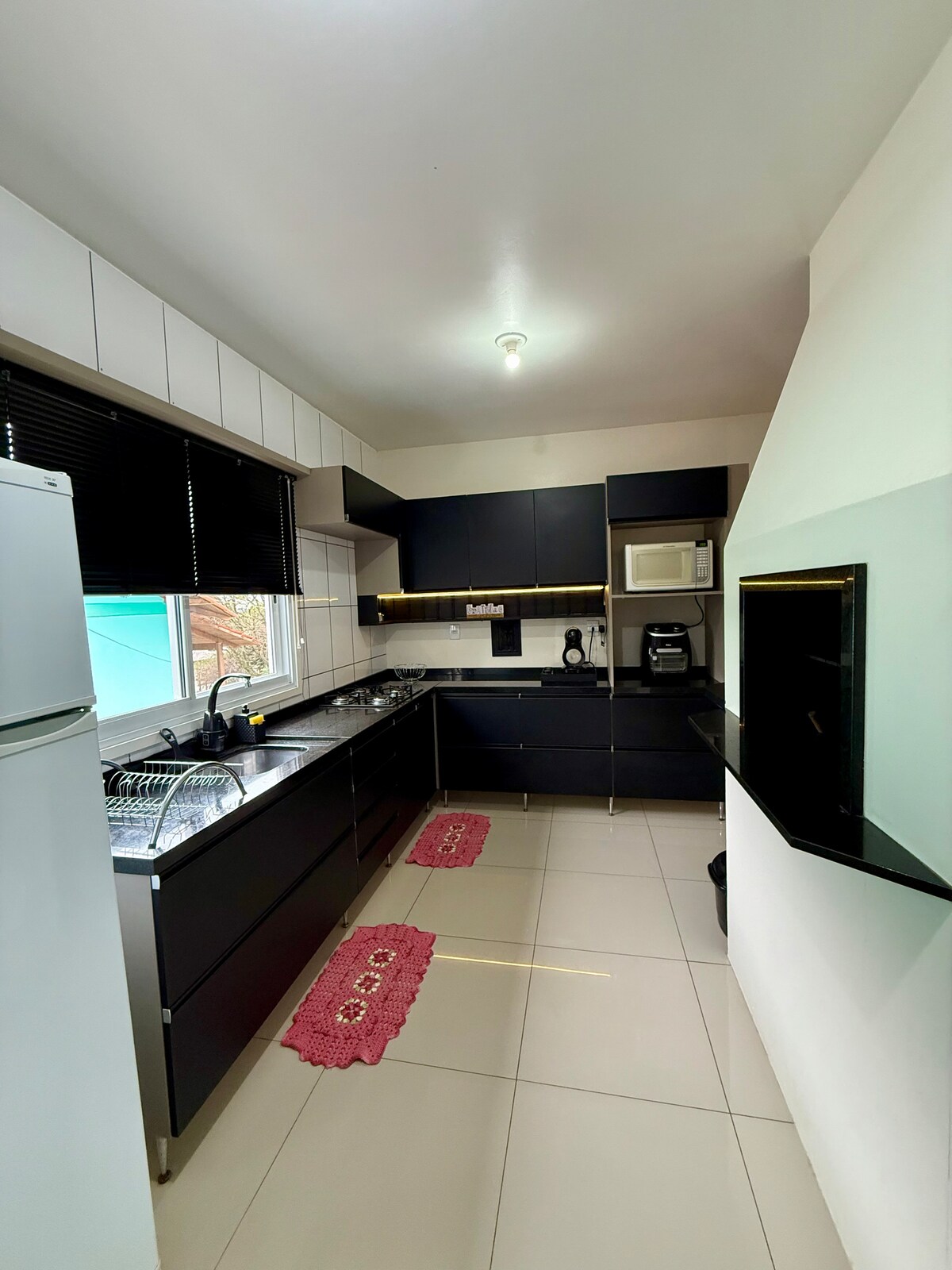 Sa ground floor lang, nakatira sa 2ndfloor ang ilang batang panginoon. Kusina na may mga kagamitan, oven at microwave. Silid - kainan. sala. 43″ na TV. 2 kuwartong may 2 double bed at 1 single bed. Banyo. Sarado at natatakpan na garahe. May ihahandang mga linen sa higaan at banyo. Air conditioning na may isang kuwarto. Magandang lokasyon. Ligtas. distansya na 900 metro (2 min. sa pamamagitan ng kotse) mula sa Havan at Atacadão Stok Center. 5 minuto sa downtown sa pamamagitan ng kotse. Mas mababa sa 450m ang lahat ng restawran/barbecue at parmasya.