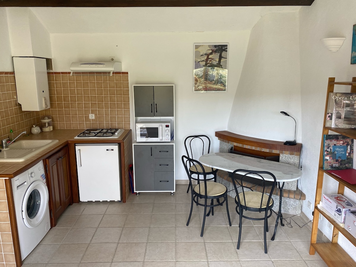 33 m2 na bahay na matatagpuan sa SAPARA, isang hamlet ng ilang bahay sa munisipalidad ng SAN GAVINO DI CARBINI sa ALTA ROCCA sa South Corsica. Ang hamlet ay nasa gitna ng bundok na tanawin (altitude 650 m) na natatakpan ng kagubatan ng holm oaks (maliit na laki na may mga paulit - ulit na dahon na partikular sa Mediterranean basin) na tinitiyak ang isang kapansin - pansing malamig na gabi ng tag - init, ito ay 33 km mula sa tabing - dagat (Propriano) sa tabi ng kalsada na tumatakbo sa kahabaan ng lambak ng Rizzanese River.