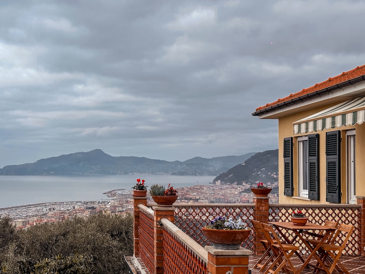 Tinatanaw ng bahay ang Golpo ng Tigullio kung saan tinatangkilik nito ang pambihirang tanawin ng dagat ,sa mga burol ng Liguria, bagama 't maigsing lakad ito mula sa dagat. ay may Garahe kung saan umaalis ang elevator sa unang palapag kung saan ang kusina, sala, silid - kainan, terrace , jacuzzi, BBQ, banyo sa pasilyo,at ikalawang palapag na may tatlong silid - tulugan at kanilang mga pribadong banyo, kasama ang attic room na may banyo.