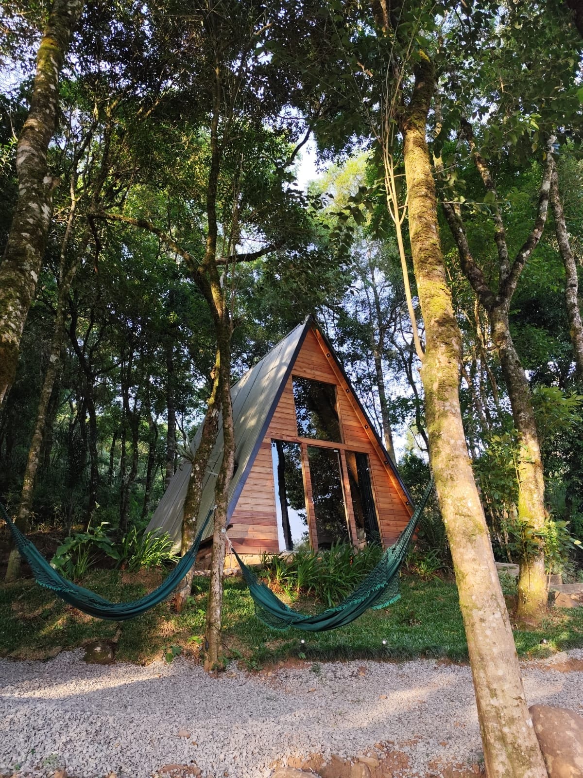 Uma cabana A frame imersa na mata nativa e nos parreirais de uma família de origem italiana. Projetada para acordar com o som dos pássaros e dormir com o barulho da água. O ponto alto fica logo na chegada, o deck fica em cima de uma cachoeira. A cozinha é completa com utensílios de ótima qualidade. O banheiro tem vista para a mata, banheira de imersão e amenities L'Occitane. Todos os cômodos são decorados nos mínimos detalhes. Ideal para relaxar e se colocar no compasso certo da vida.