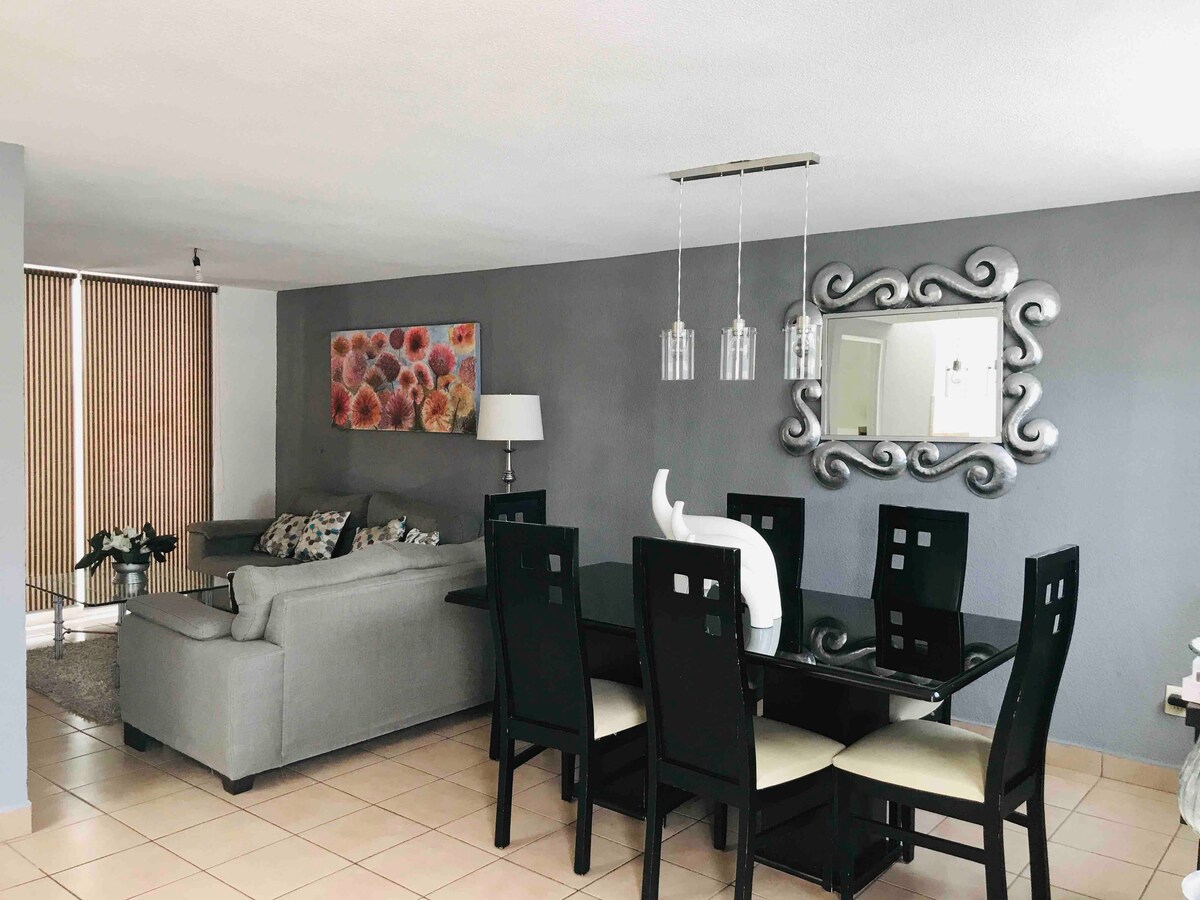 Ang iyong kaligtasan, ang aming priyoridad, ganap na pribadong tuluyan na may 24 na oras na pagsubaybay, sa Real de Arboledas, magandang lugar, ang bahay ay may lahat ng kailangan mo para sa isang pamilya o pamamalagi sa trabaho, 3 silid - tulugan, nilagyan ng kusina, TV. Wifi, Netflix at Roku, mainit na tubig, silid - kainan, sala at grill sa hardin, espasyo para sa malayuang trabaho, malapit sa lugar na may kagubatan kung gusto mong maglakad, malapit sa Constituyentes, Eje Juan Pablo, 8 minuto mula sa Centro