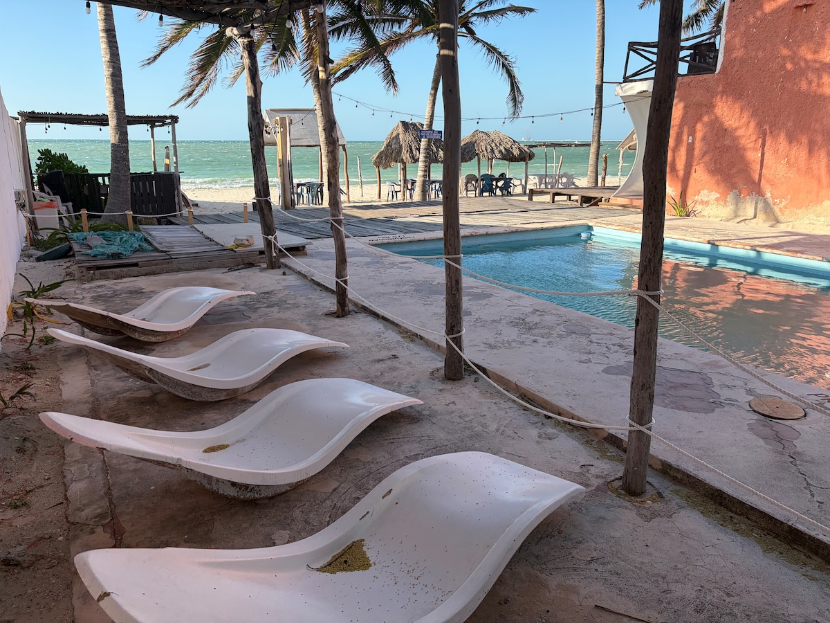 Queen room malapit sa dagat sa Celestún