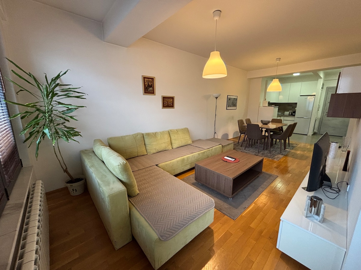 Mag - enjoy sa naka - istilong karanasan sa lugar na ito na may gitnang lokasyon Ito ay BAGONG - BAGONG 60m2 apartment 5 minuto sa pamamagitan ng paglalakad mula sa parke ng lungsod (istadyum) at mula sa pangunahing parisukat. Pinakamagandang posibleng lokasyon, malapit sa magagandang kalye ng Debar Maalo na may maraming bar at restawran. Ang apartment ay may 1 silid - tulugan na may queen - sized na higaan, at isang sala na may komportableng sofa bed + pull out bed Mayroon ding 2 balkonahe mula sa magkabilang kuwarto, ang isa ay kung saan matatanaw ang bundok ng Vodno. Puwede mo itong gamitin para uminom ng kape o kumain ng tanghalian
