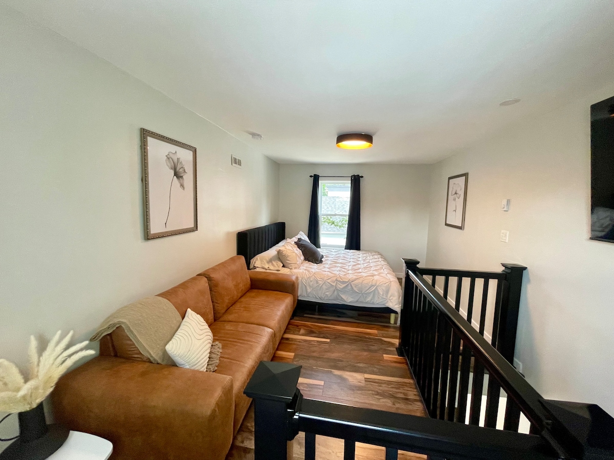 Maligayang pagdating sa aming Airbnb na "The Queenie". Matatagpuan ang aming Studio sa isang heritage home sa Canada, na itinayo noong kalagitnaan ng 1800. Ang gusaling ito ay isang pangunahing sangkap sa sentro ng lungsod ng Moncton, NB. Ang aming studio ay isang 800 sqft loft na tinatanggap ka nang may estilo para sa komportable, nakakarelaks, at sexy oasis. Sa gusaling ito, makakahanap ka ng marangyang Spa Salon na nagngangalang NAKAI at Chic Modern Cafe & Cocktail lounge na nagngangalang LOLI! Nasasabik kaming i - host ka!