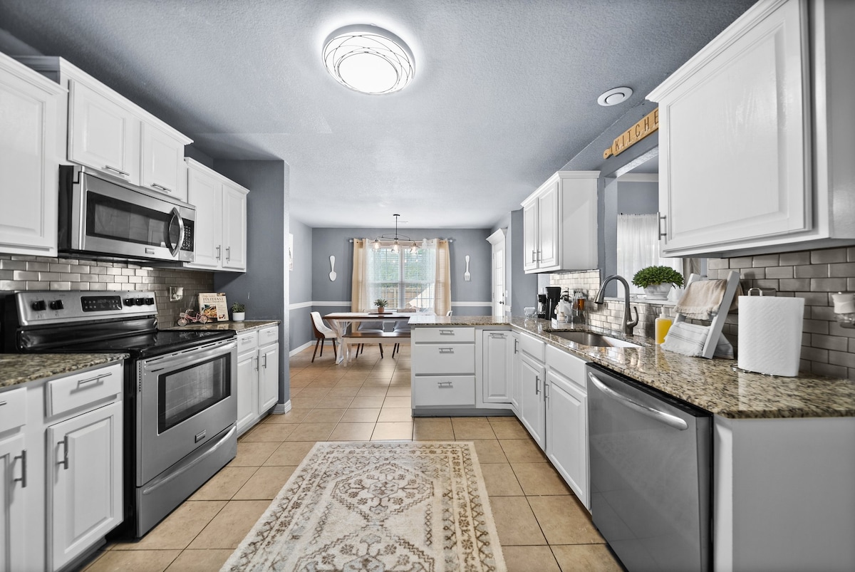 Simple at maginhawang tuluyan sa isang mapayapang kapitbahayan, na malapit sa mga trail, sining, pagkain, at negosyo. Mga 3Br na ipinangalan sa aming mga paboritong lugar sa labas. Ang Coler room ay ang aming master - full private bath, queen bed, makeup vanity, 2 shower, TV, at massaging recliner. Ang mga kuwarto ng Kessler at Hobbs ay ang 2 kuwarto ng bisita ng tuluyan na may access sa buong paliguan sa pamamagitan ng pinaghahatiang pasilyo. Nilagyan ang bawat kuwarto ng kumpletong higaan, aparador, at TV. Kumpletong Kusina, kumpletong utility, mga sala at silid - kainan din.