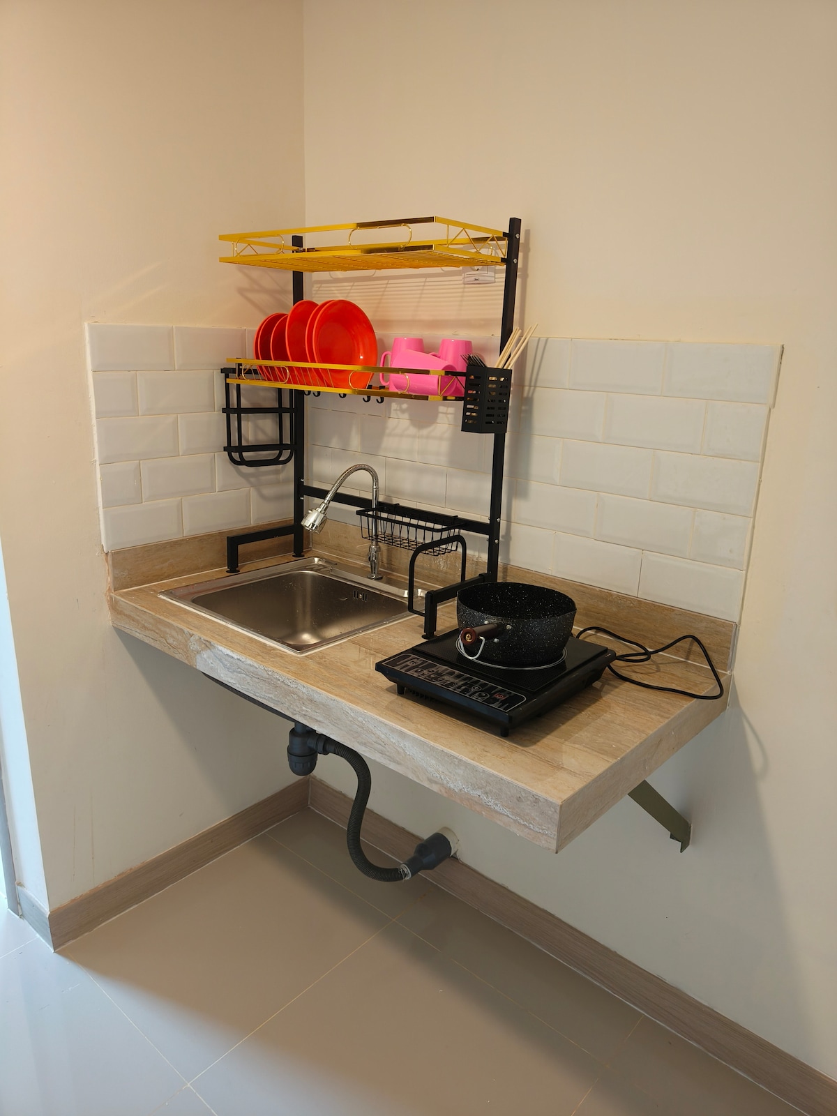 Forget your worries in this spacious and serene space. 1 BR Peaceful Japandy Style Full Furnished Monthly / yearly rent Water Heater Bathtub AC Kitchen set TV Dispenser Refrigerator Strategic location Near toll access Near hospital Near Minimarket Location in MM2100 area Kindly contact host for booking