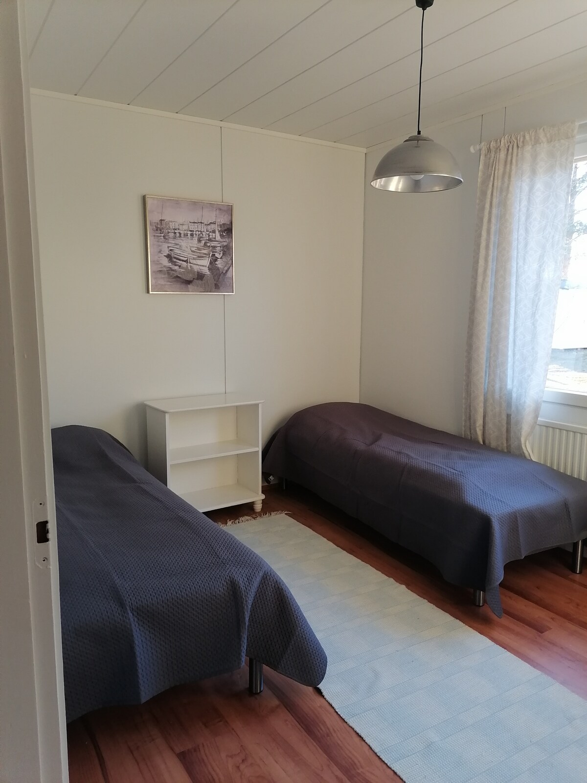Fridfull villa vid sjön. Yta: 80 m2 inomhus + stor terrass och utebastu Antal bäddplatser är 6 separata sängar. Rum: Kök, vardagsrum, 3 sovrum, hall, badrum +bastu Faciliteter: öppen spis, kylskåp/frys, elektrisk spis och ugn, diskmaskin,microvågsugn, kaffebryggare, vattenkokare. På gården finns ytterligare en strandbastu.