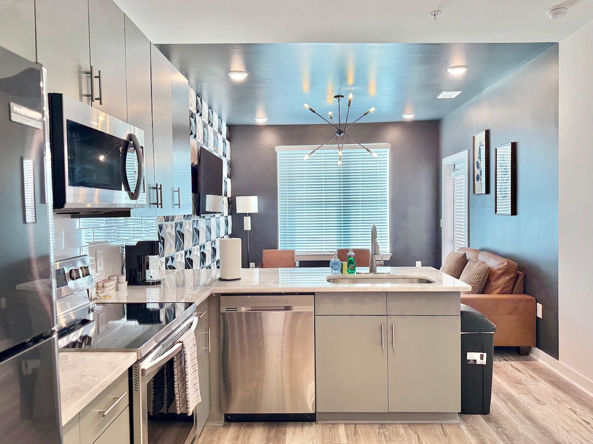 Welcome sa loft mo sa Castleberry Hill—isang tuluyan sa downtown na puno ng karakter, may flexible na espasyo, at madaling mapupuntahan ang mga pinakasikat na lugar sa Atlanta. - 6 ang kayang tulugan | 2 silid-tulugan | 3 higaan | 1.5 paliguan - May elevator at libreng paradahan sa garahe sa lugar - 1 puwesto - Lounge sa bubong, pinaghahatiang patyo o balkonahe, at pinaghahatiang ihawan para sa BBQ: de-kuryente - Kumpletong kusina na may stainless steel na gas stove ng Jenn‑Air - Washer at dryer sa unit, nakatalagang workspace - Pinapayagan ang sariling pag-check in gamit ang smart lock at ang mga pangmatagalang pamamalagi