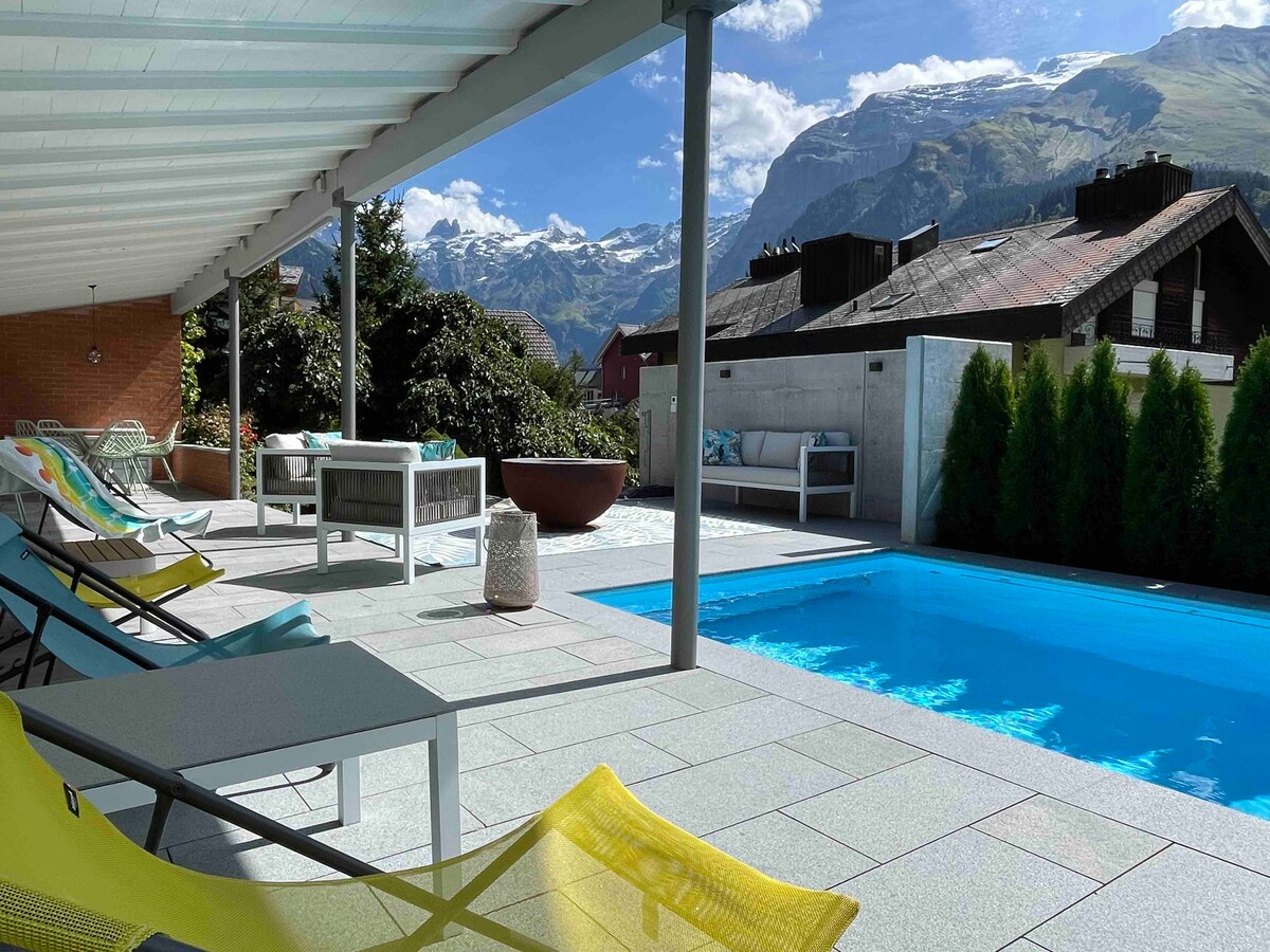 Magandang villa na may maraming kagandahan at espasyo at kamangha - manghang tanawin ng nayon at mga bundok. Ang lugar ng tirahan ay hindi maaaring maging mas mahusay. Tahimik at eksklusibo, bahagyang nakataas at kahanay ng Dorfstrasse. Mga restawran, shopping place, sinehan, pampublikong banyo, lahat ay nasa maigsing distansya. Pinainit ang outdoor pool mula Mayo hanggang Setyembre at magagamit ito depende sa lagay ng panahon.