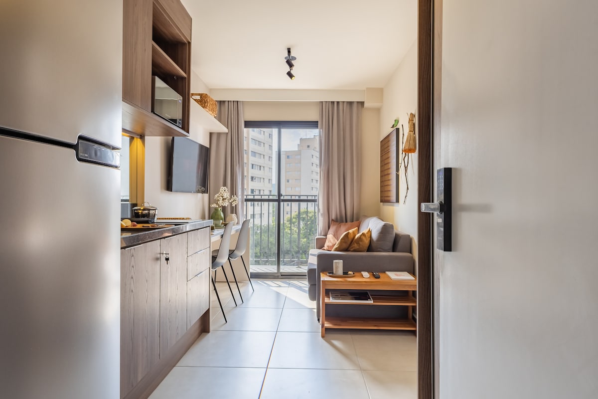 Mamalagi nang komportable sa apartment na ito sa Jardins, malapit sa Paulista, MASP, Oscar Freire at Ibirapuera Park. Maraming natural na liwanag, 2 silid - tulugan na may mainit at malamig na air conditioning, mga aparador, mga higaan na may malambot na kutson, 100% cotton towel at mga sapin, Wi - Fi, Smart TV, nilagyan ng kusina at sakop na paradahan sa gusali. Perpekto para sa mga bumibiyahe para sa trabaho, pag - aaral, paglilibang o medikal na paggamot. Apartment para sa mga may gusto sa kung ano ang maganda. Hindi lang bahay, komportableng tuluyan ito.