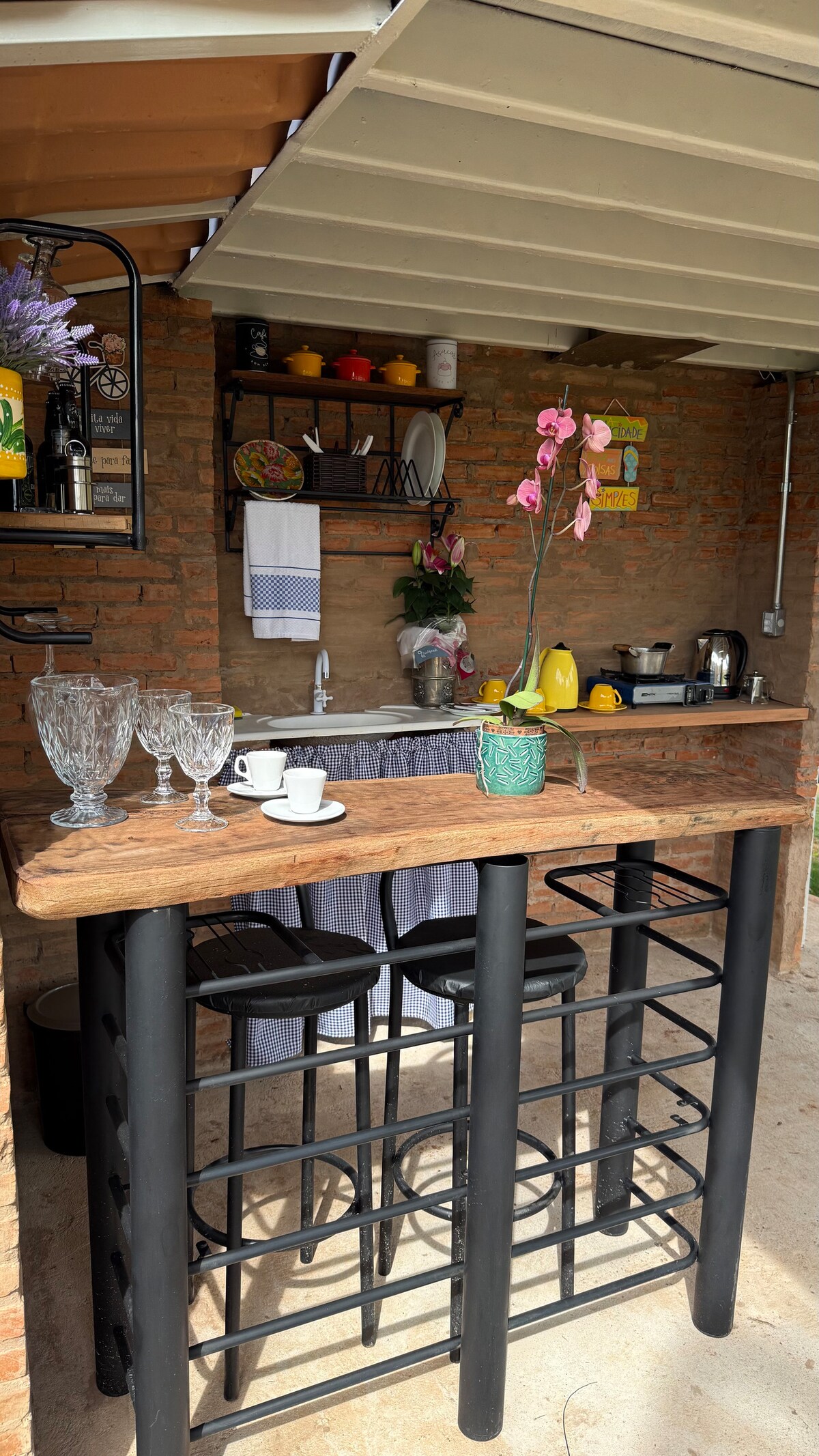 Ang Rancho do Chiclete ay may kumpletong istraktura para sa iyong pamamalagi at paglilibang. Mayroong dalawang independiyenteng gusali sa parehong complex: Casa do Chiclete at Varanda de Lazer. Ang Bahay ng Gum ay naglalaman ng: - Pinagsama - samang sala na naglalaman ng TV room, dining table at kusina; Sakop na garahe na may sombrite para sa 6 na kotse; Sakop na balkonahe; 6 na suite. Ang balkonahe ng paglilibang ay naglalaman ng: kusina, malaking balkonahe na may barbecue pit, grill, wood burning stove, swimming pool, sauna, pool. ping pong table, field na may volleyball net