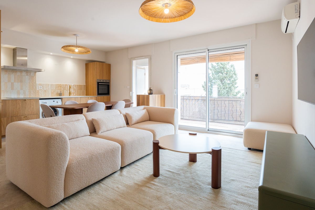 Appartement d'architecte luxueux design et unique, parking, dans un bâti haussmanien de charme, climatisation réversible gainable et literie haut de gamme confortable, tout équipé avec patio de 30m2. Idéalement situé au calme absolu, visitez la ville à pied : 4 minutes de la gare TGV et des arènes romaines, des monuments romains, profitez de la douceur de vivre du Sud et des chants d'oiseaux en étant proche de tout: cafés, terrasses, boutiques, musées... Tout à été pensé pour votre confort