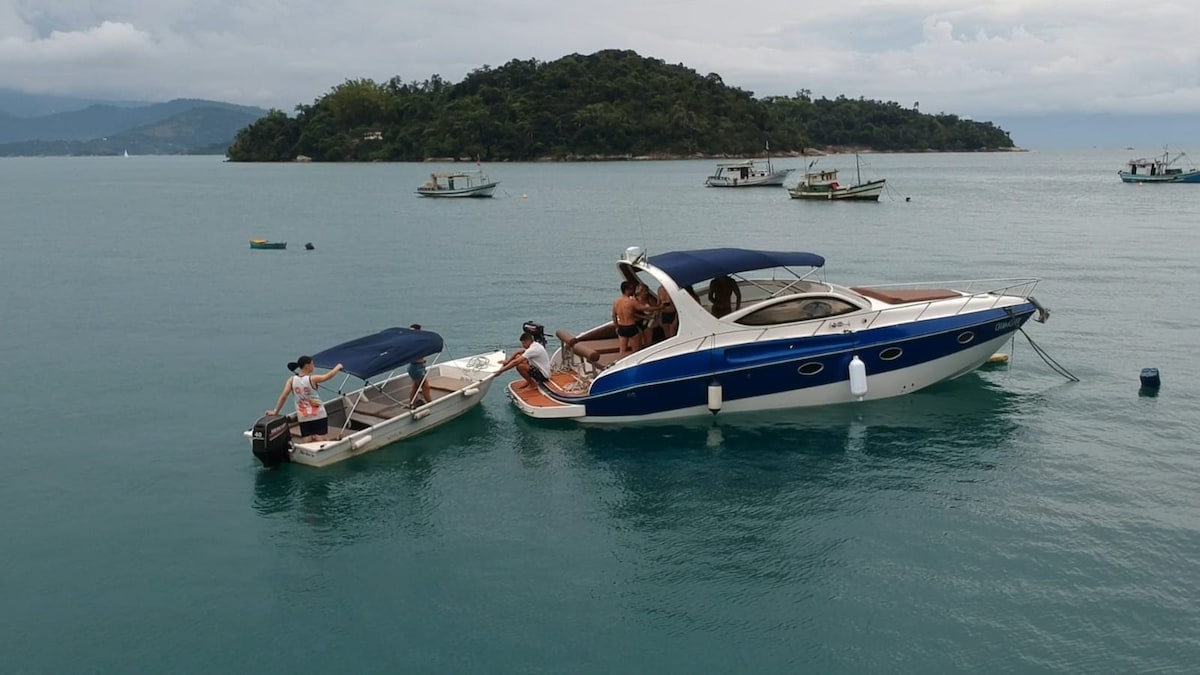 Magandang bahay sa Ilha na may 200 metro na mabuhanging beach at kumpletong imprastraktura. Maliwanag at kaaya-ayang bahay, buong tanawin ng dagat. Inilalarawan ng aming pamilya, mga kaibigan at mga bisita ang lugar bilang paradisiacal. May 5 suite na kumpleto sa kaginhawa, air conditioning, minibar, at TV. Mayroon din kaming munting bangka para sa pagbiyahe at iba pang serbisyo na may bayad para sa diesel. Kasama ang marinero at katulong. Kung gusto mo, mayroon kaming mahusay na tagaluto na nagtatrabaho para sa pamilya sa loob ng 30 taon (hiwalay na bayad sa upa ng bahay)