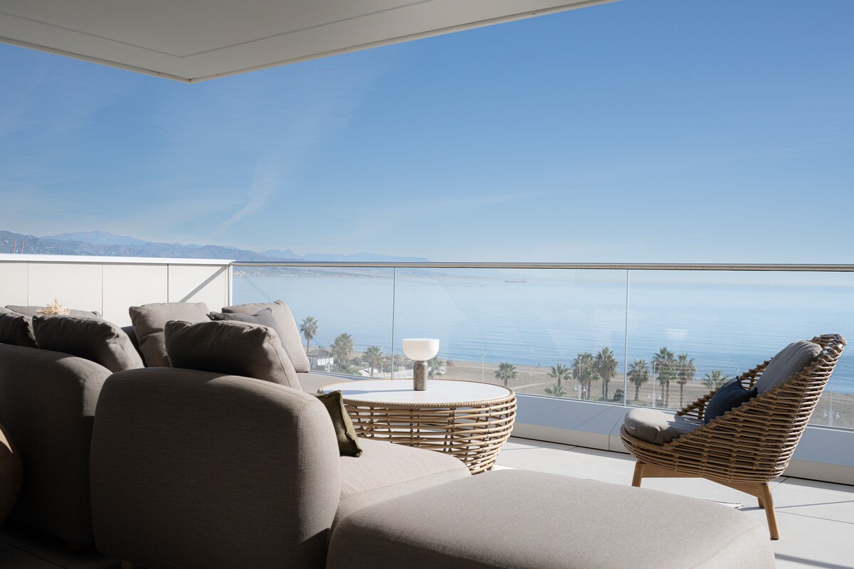 Oceana is a stunning 3 bedroom apartment in a luxurious community at the outskirts of Malaga. The gated complex offers large outdoor pools, a wellness center (gym, sauna, heated indoor pool), private parking and 24h concierge. The apartment itself is a true modern oasis for up to 6 people with spacious living area endless views of the gardens, pools and sea from its terraces. If first-class amenities and an unrivalled location are important to you, then the Oceana complex is the right one.
