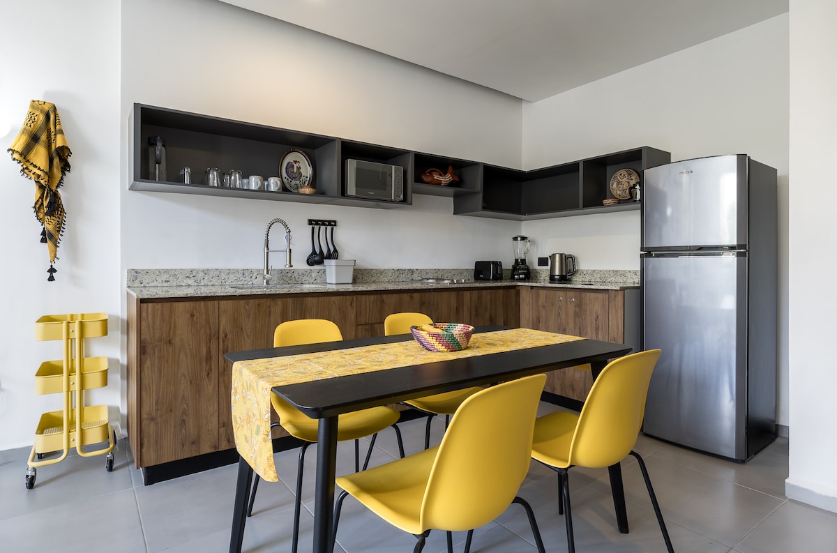 Depita Limona is an apartment that has a privileged location, it is located just a couple of blocks from the new Gastronomic Corridor with delicious restaurants, bars and cafes, a 10-minute walk from the new “La Plancha” park and one block from the emblematic Paseo Montejo , all considered one of the most important tourist areas of the city. It is the ideal place to enjoy your stay in Mérida, quiet, cozy and to enjoy the historic center on foot.