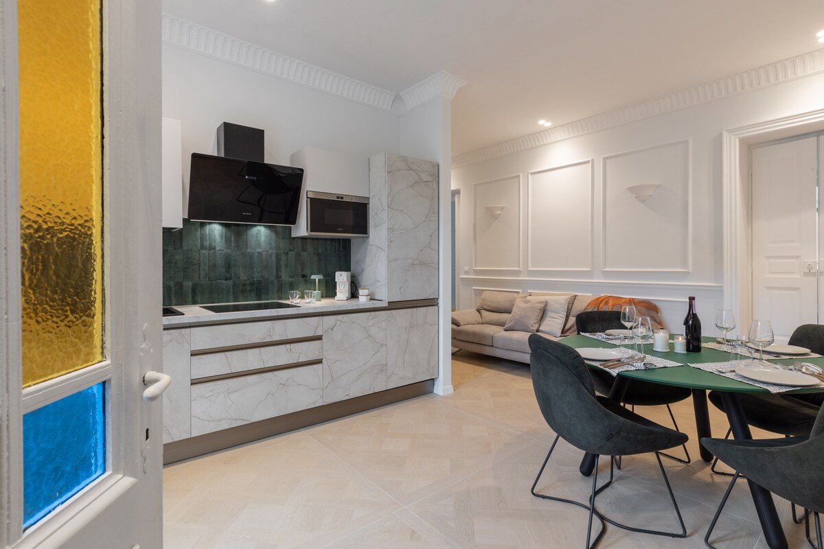 Manatili sa gitna ng lungsod sa isang eleganteng apartment na may malalaking espasyo na nilagyan ng kaginhawaan at pagpapahinga. Ang maliwanag na sala, na nahahati sa tatlong lugar , ay pinaghihiwalay mula sa lugar ng tulugan sa pamamagitan ng isang pandekorasyon na bintana na naglalaman ng isang koleksyon ng mga sinaunang porcelains. Ang ilang mga living area ay nahahati sa relaxation TV , malaking silid - kainan at kusinang kumpleto sa kagamitan: dito mayroong dalawang sofa bed. Puwede ring gawing kuwartong may 3 pang - isahang kama ang isa sa dalawang double bedroom.