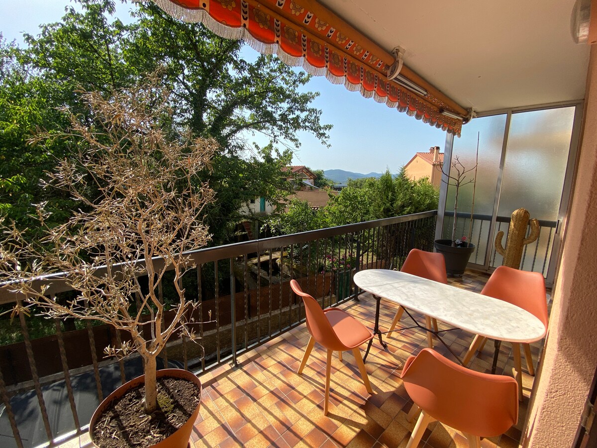 Nice apartment F2 40m², sa 2nd at huling palapag, air conditioning, walk - in shower, kusinang kumpleto sa kagamitan, TV . Tahimik at maliwanag, madaling paradahan. Ganap na naayos. Matatagpuan may 3 minutong lakad mula sa sentro ng lungsod. Ang Céret ay isang napaka - welcoming na maliit na bayan, isang museo ng modernong sining, nakakaengganyong café terraces, Sabado ng umaga market, maraming aktibidad... Matatagpuan 15 minuto mula sa mga bayan ng spa ng Amélie Les Bains at Le Boulou, 30 minuto mula sa mga beach at 10 minuto mula sa hangganan ng Espanya. Sa paanan ng mga bundok.