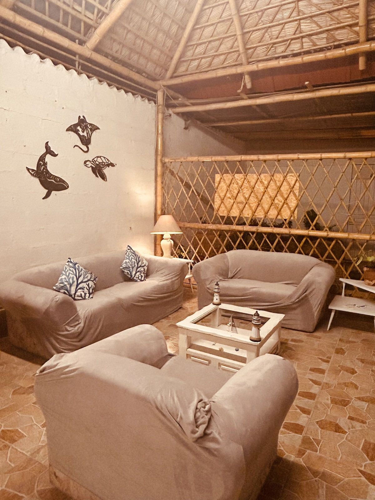 Casa Blanca familiar cuenta con acabados rústicos y bambú, crea un espacio de relajo, apto para temporada de verano 2023, cuenta ambientes ventilados y frescos adecuados para los días de verano, sala comedor, cocina, cochera para 01 vehículo y con desarenador en el patio, todo amoblada, si es de su preferencia se facilita mensajería para la cocina, pensando en la las condiciones climáticas y demás, pregunté por los tul personales para cama.