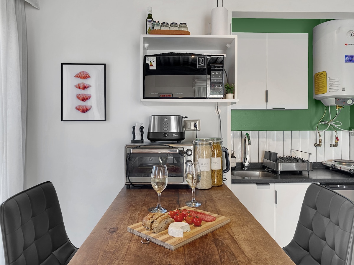 Naghahanap ng estilo, pahinga at magandang lokasyon? Mayroon ang modernong studio na ito ng lahat ng kailangan para sa di-malilimutang pamamalagi sa Santiago. Kumpleto ito para sa 2 tao: ♨️ Air Conditioning 🍴 Kumpletong kusina. 💻 Napakahusay na Wifi at Kainan Dekorasyon sa Boutique ✨ 🥩 Gas Grill 🏓 Table tennis table 🗻 Tanawin ng Cordillera 📚 Mga libro at board game May kasama kaming lokal na guide na may mga rekomendasyon para masulit mo ang magandang lungsod na ito!