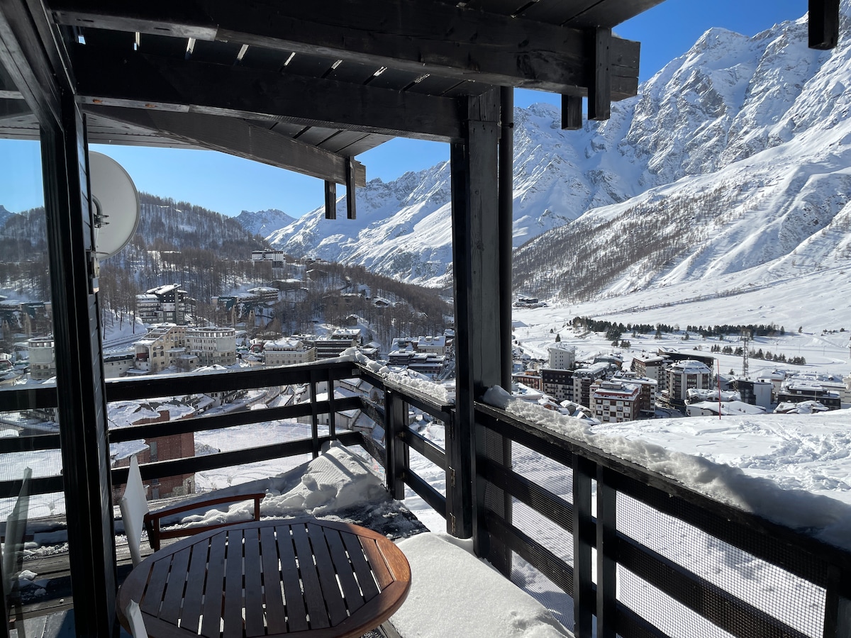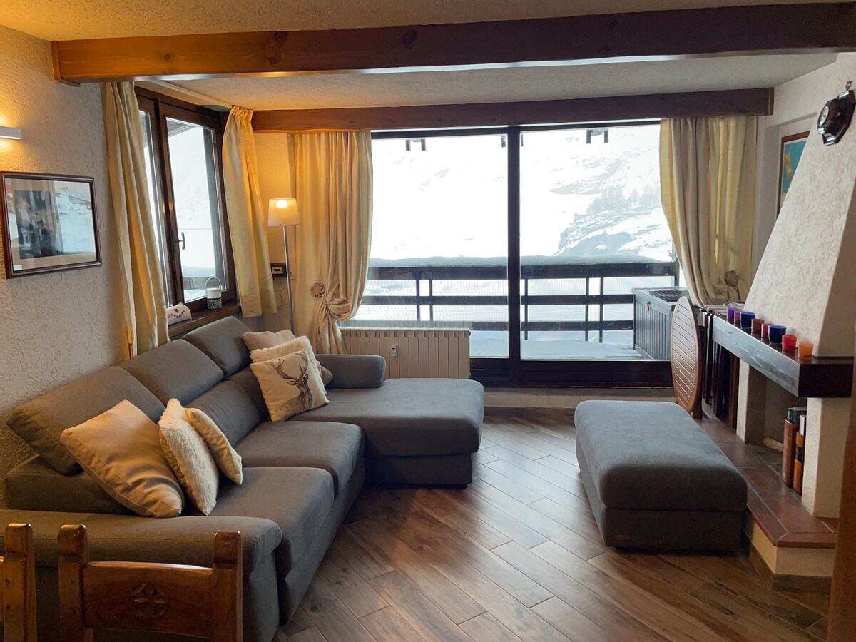 Apartment na may tanawin ng Matterhorn, isa sa pinakamagagandang bundok sa buong mundo. Sa gitna ng Cervinia, malapit sa mga ski slope, 100 metro mula sa mga cable car ng Cervinia, 500 metro mula sa cross - country ski slope at mga golf course. Sa parehong condominium kung saan matatagpuan ang apartment, makikita mo ang lahat ng serbisyo: Cervino Ski School, Self Service Laundry (puwedeng maglaba at magpatuyo), Coffee Bar, Bangko, supermarket, tindahan ng karne, tindahan ng pahayagan, mga gamit sa bahay, telepono, damit.