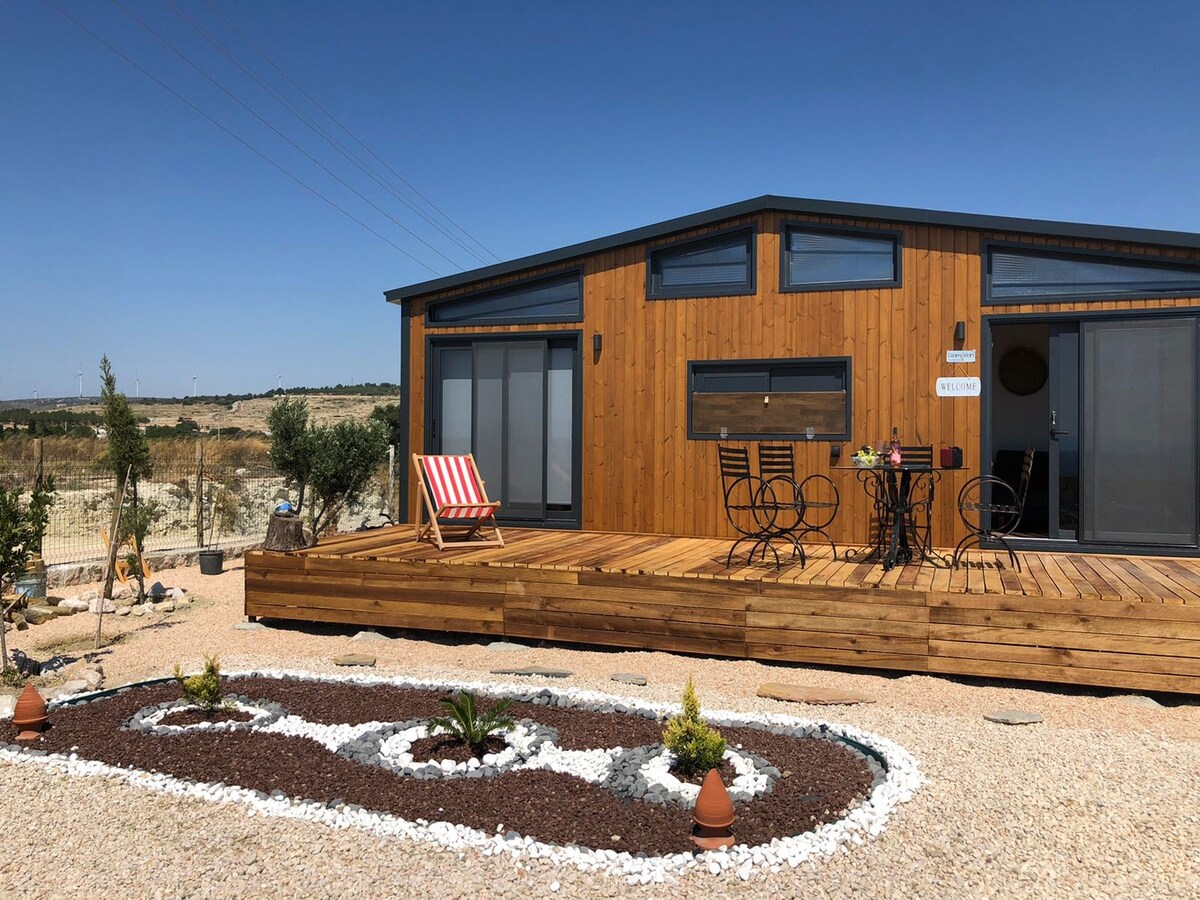Dalawang daang puno ng olibo at dose - dosenang puno ng prutas sa aming walong ektaryang hardin sa Ovacık, Çeşme, ang nag - aalok sa iyo ng kasaganaan ng kalikasan. May dalawang magagandang munting bahay na nakahanay sa mga likas na kagandahan na ito. Madali mong maaabot ang mga sikat na beach club sa lugar (Bago ang Paglubog ng Araw, Boheme) sa loob ng 5 minutong distansya ng kotse. Para makasali ka sa kasiyahan anumang oras na gusto mo, at pagkatapos ay bumalik sa mapayapang bisig ng kalikasan. Matatagpuan din kami 10 minuto lang mula sa masiglang kapaligiran ng Alaçatı.