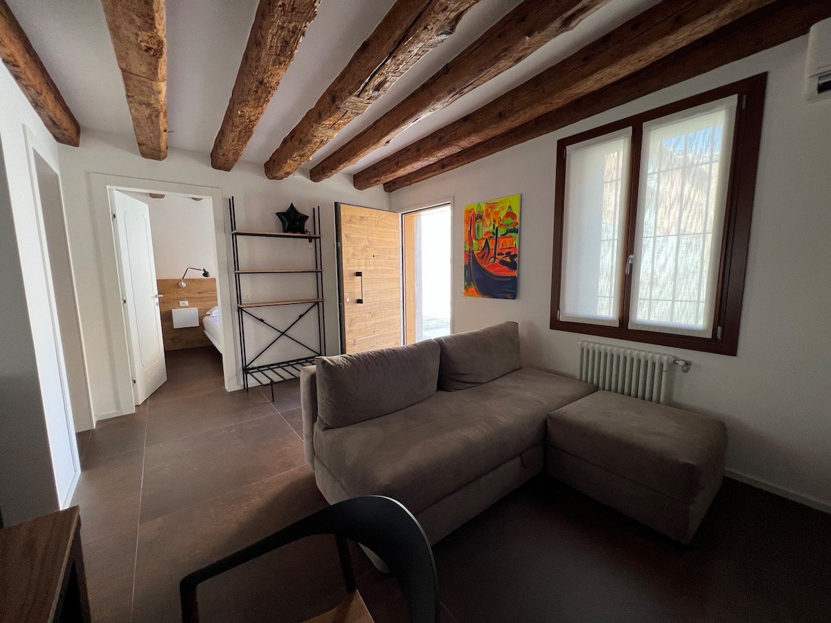Bahay na may magagandang tanawin ng kanal at simbahan, ang resulta ng isang kamakailang at maingat na pagpapanumbalik ng pagpapanatili ng mga orihinal na katangian, Venetian terrace floor, moderno at komportableng palamuti, na binabaha ng liwanag at araw. Sa isang buhay na buhay na kapitbahayan sa makasaysayang sentro, ilang minutong lakad mula sa dalawang steam stop, malapit sa Grand Canal, Rialto, mga museo, supermarket, parmasya, tipikal na tavern. Custom code access, underfloor heating, air conditioning, wifi. Na - sanitize ang bahay!