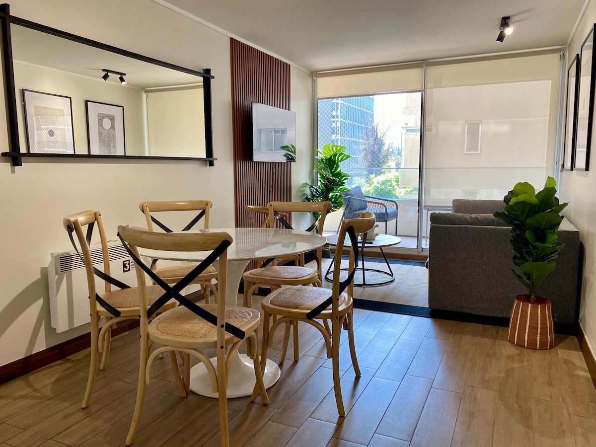 Napakagandang lokasyon ng apartment na 30 hakbang lang ang layo mula sa klinika ng Las Condes. Malapit sa Leader Supermarket, Mga Parmasya at Restawran. Direktang koneksyon sa Kennedy at North Costanera highway. Isang kuwarto ang apartment at may Two - seat sofa bed sa sala. Mayroon itong lahat ng gamit sa kusina at paliguan. Mayroon din itong washing machine at mga kalan para mapainit ito. Pribadong paradahan sa loob ng gusali