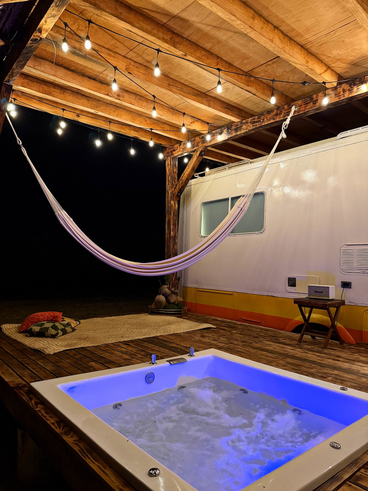 NARAYANA es una caravana del año 1990 transformada con nuestras propias manos en un refugio frente al mar. Un proyecto nacido del amor por el diseño, lo natural y la calma. Aquí puedes despertar con el canto de los pájaros, ducharte mirando el mar o ver las estrellas desde el jacuzzi mientras el océano ruge a lo lejos. A unos pasos, una playa virgen y casi desierta. Este santuario es una experiencia. Aquí no solo vienes a descansar, vienes a recordar cómo se siente estar presente.
