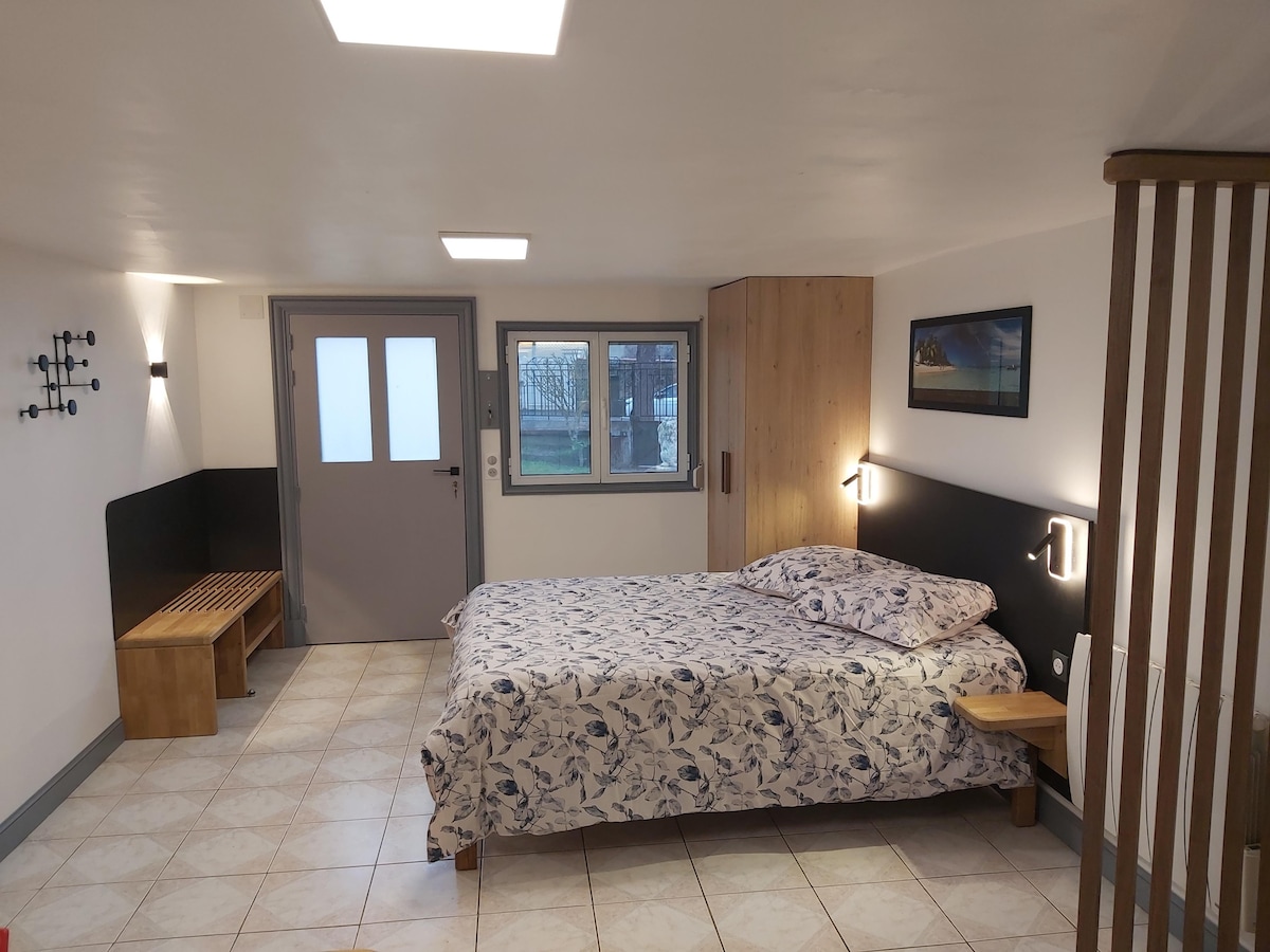Pambihirang setting para sa studio gite na ito na inayos gamit ang mga ekolohikal na materyales. Napakahusay na idinisenyo para tumanggap ng 2 tao (4 na tao para sa maikling biyahe). Ang isang double bed ay matatagpuan sa mezzanine; ang isang hagdan ay nagbibigay - daan sa pag - access. Available ang 2d bed sa ground floor (sa kaso ng 3 o 4 na bisita). Nilagyan ng kusina: refrigerator, hob, kettle kettle. Banyo na may shower at toilet. Koneksyon sa internet. Ang isang panlabas na hagdanan ay nagbibigay - daan sa pag - access sa cottage. Outdoor garden terrace sa iyong pagtatapon.