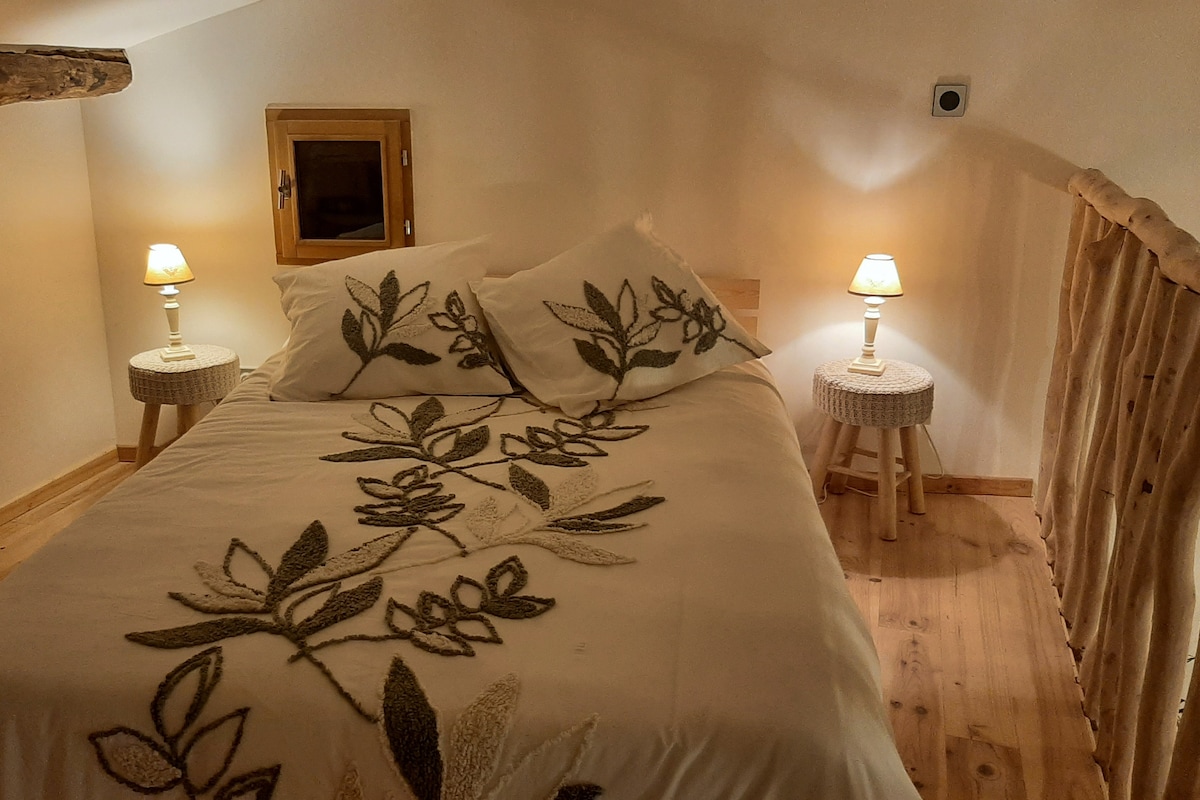 Appartement rénové récemment, au calme (dans une extension de notre maison). L’accès est indépendant, accès depuis une petite cour-terrasse privative. Entièrement équipé, accès WIFI, télévision, cuisine complètement équipée Dans la chambre, un lit double de qualité. terrasse extérieur un barbecue est disponible. Tout en étant très lumineux, il est frais en été. En hiver le chauffage est se fait avec un poêle a granules que nous fournissons et / ou avec des radiateurs électriques à inertie.