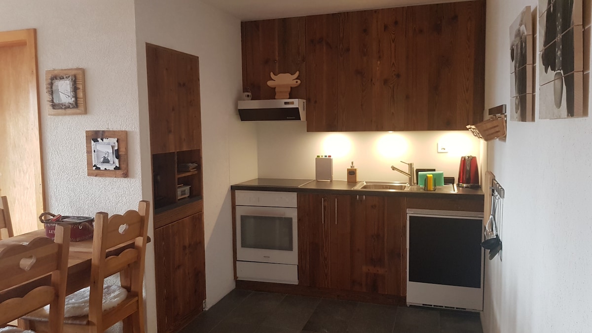 Apartment na may mga dekorasyon na 'bundok'. Ang dalawang maliit na nakapaloob na silid - tulugan + 1 sala ay nagbibigay - daan sa isang pamilya na manatiling komportable. Functional na tirahan sa loob ng maigsing distansya ng sentro ng nayon. Available ang wifi nang libre. Mula Hunyo hanggang Oktubre, 2 "Annivier pass" ay magagamit sa apartment at nagbibigay sa iyo ng libre o 50% access sa maraming amenities > Anniviers ski lift, Swimming pool, Tennis, Minigolf, Cultural visit, Postal Car... (tingnan ang website).
