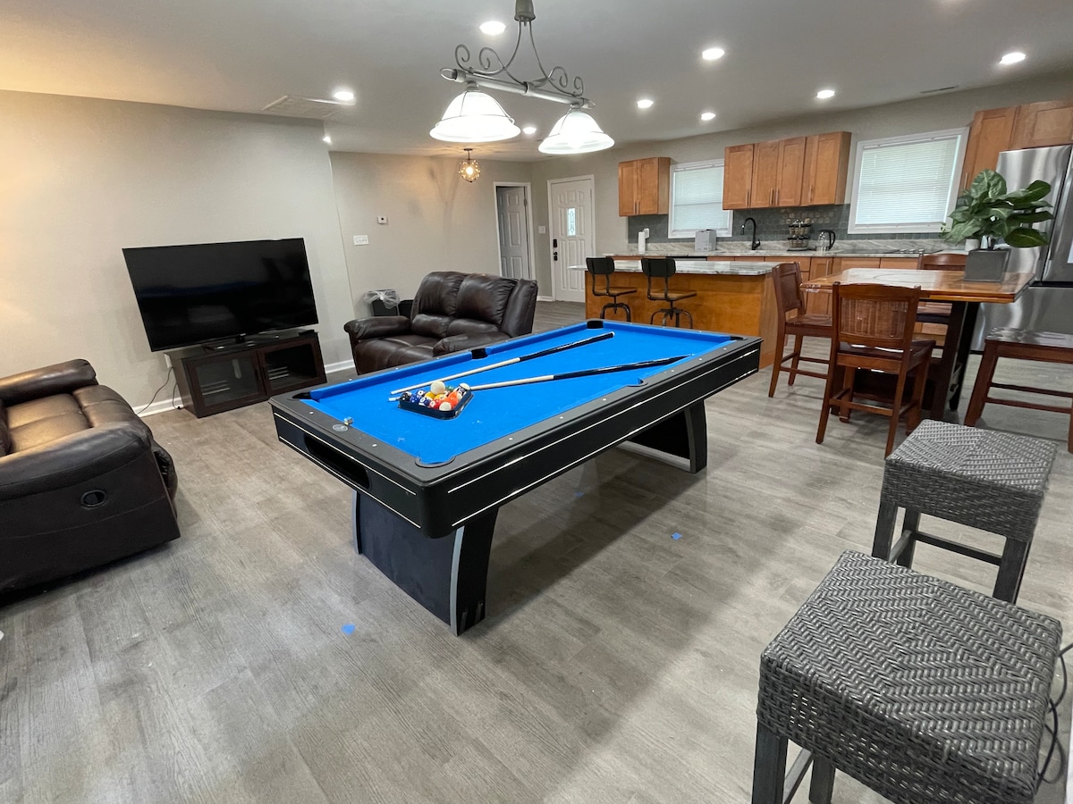 This stylish Sterling home is perfect for your next getaway! Conveniently located just 8 minutes from Dulles Airport, this modern retreat offers privacy and comfort. Enjoy a spacious, open-concept floor plan. Detailed check-in instructions provided for a Seamless, contact-free arrival The house features plenty of parking and amenities such as a pool table, high-speed internet, and streaming services like Netflix, HBO Plus, and Hulu. Suitable for working adults, family vacations, and gatherings.