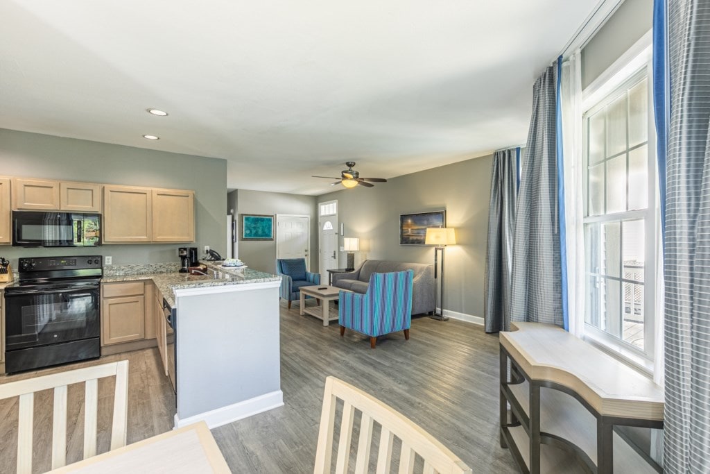 Edisto Island, off the southern coast of South Carolina, is a true beach escape. Equal parts relaxation and recreation, the resort offers 300 wooded acres of sleepy lagoons that invite appreciation for the slower southern pace of life. Wyndham Ocean Ridge|1BR/1BA King Bed Balcony Suite • Size: 673 - 711 • Kitchen: Full • Baths: 1 • Accommodates: 4 Guests • Beds: King Bed - 1 Queen Sleeper Sofa - 1